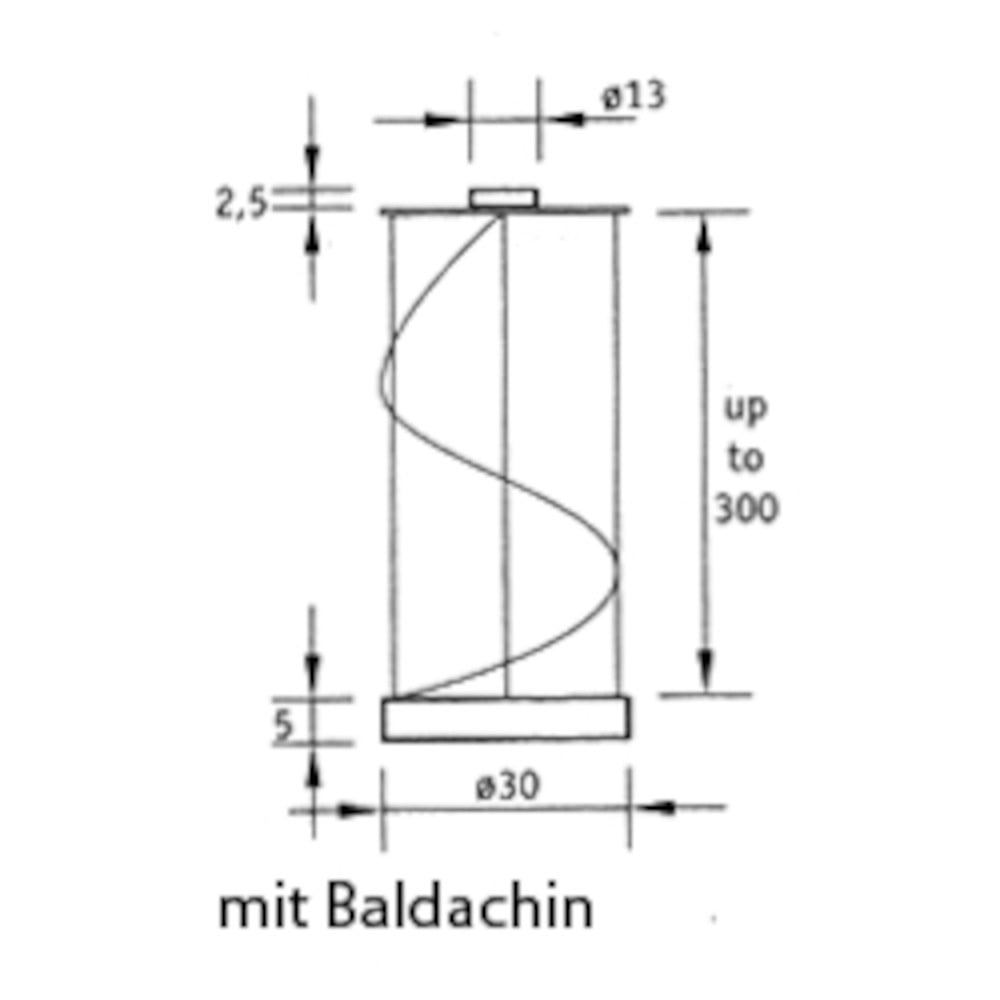 | Maße: | max H: 300cm, H Schirm: 5cm, Ø Schirm: 30cm, H Baldachin: 2,5cm, Ø Baldachin: 13cm |