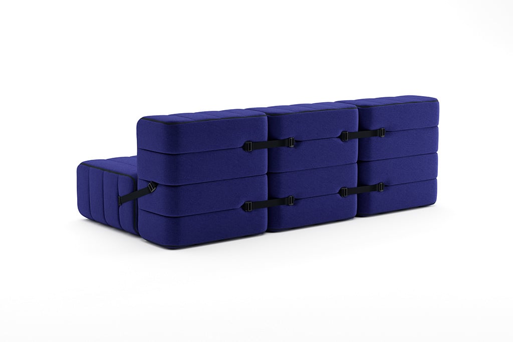 Kaum zu glauben, aber wahr. Diese unendliche Vielfalt wird durch nur eine einzige modulare Form erzeugt. Ein Quader mit einer quadratischen Basis, deren Höhe die Hälfte der Länge seiner Seiten beträgt. Zusätzlich 16 versteckte Verbindungsschleifen, die nur bei Bedarf sichtbar sind. So einfach, so unendlich. Das Grundelement wurde unter anderen auch so designed, dass es einfach mit einem Versandunternehmen versendet werden kann. Beim nächsten Umzug wird das Sofa das kleinste Problem darstellen.
