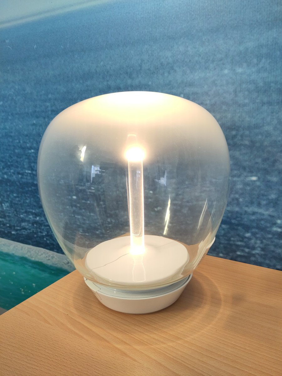 Die Artemide Empatia LED Tischleuchte besteht aus einem mundgeblasenen Glasdiffusor und einer weiß lackierten Aluminium Struktur. Dabei ist jeder handgefertiget Diffusor ein absolutes Einzelstück. Der untere Teil besticht durch seine makellose Transparenz, während die obere opalisierte Hälfte ein blendfreies Erlebnis und ein angenehm diffuses Licht gewährleistet. Im Mittelpunkt steht jedoch ein transparenter Stab aus Polycarbonat, der das warmweiße Licht einer Hochleistungs-LED nicht nur mit maximaler Effizienz zum Glasdiffusor führt, sondern auch gleichzeitig für eine ausgewogene und stimmungsvolle Raumbeleuchtung sorgt.