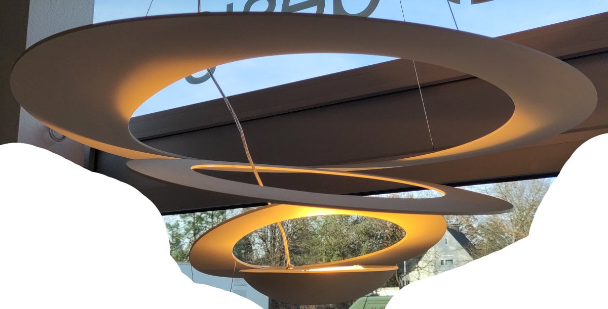 Die von Giuseppe Maurizio Scutellà entworfene Artemide Pirce Serie besticht durch ihr schwebendes Design aus weißen, spiralförmigen Scheiben, die faszinierende Lichteffekte erzeugen. Die Serie bietet Lösungen als Decken-, Pendel- und Wandleuchte.
