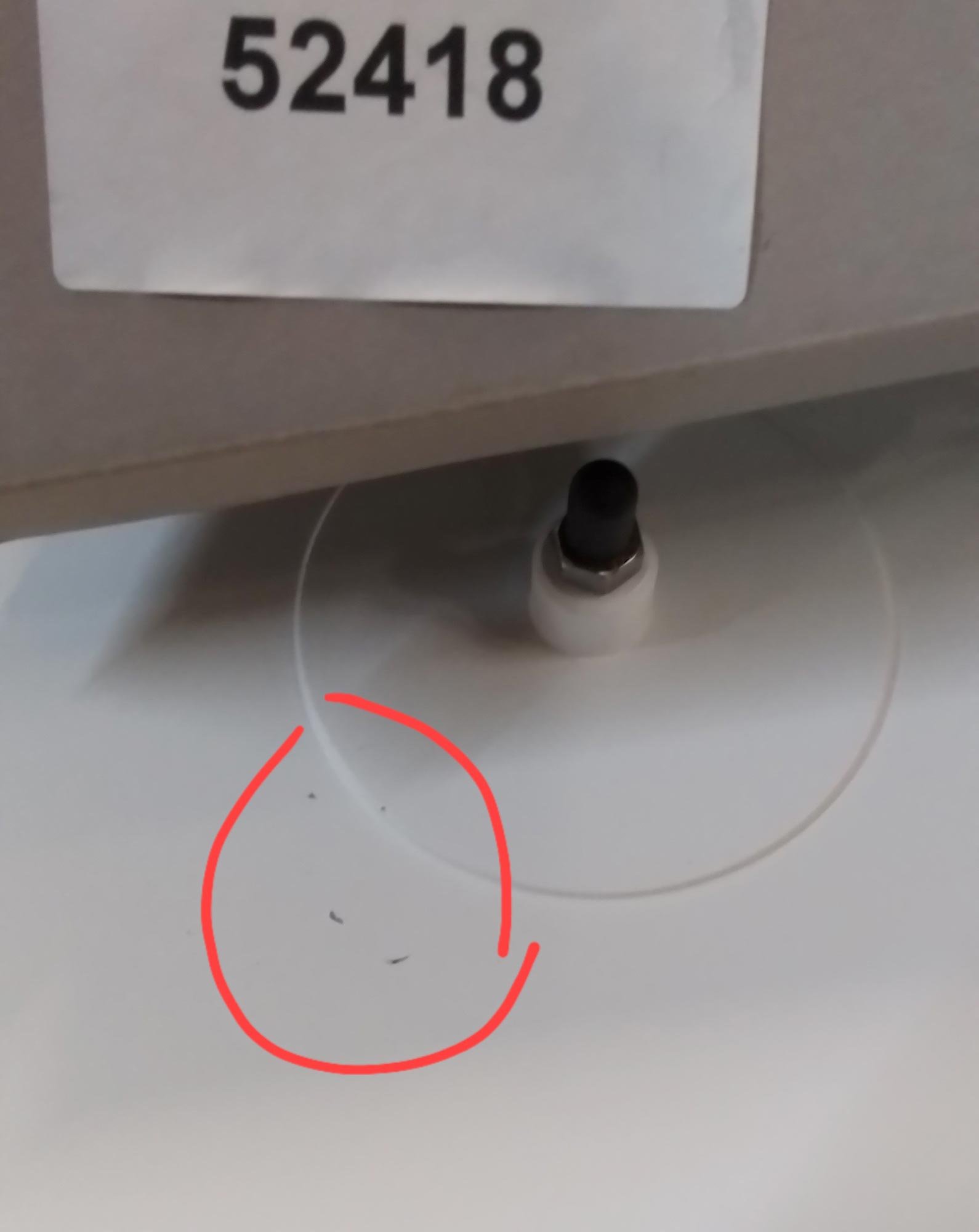 An der Unterseite der Tischplatte befinden sich Kratzer (optisch, im normalen Gebrauch nicht sichtbar) – siehe Bilder