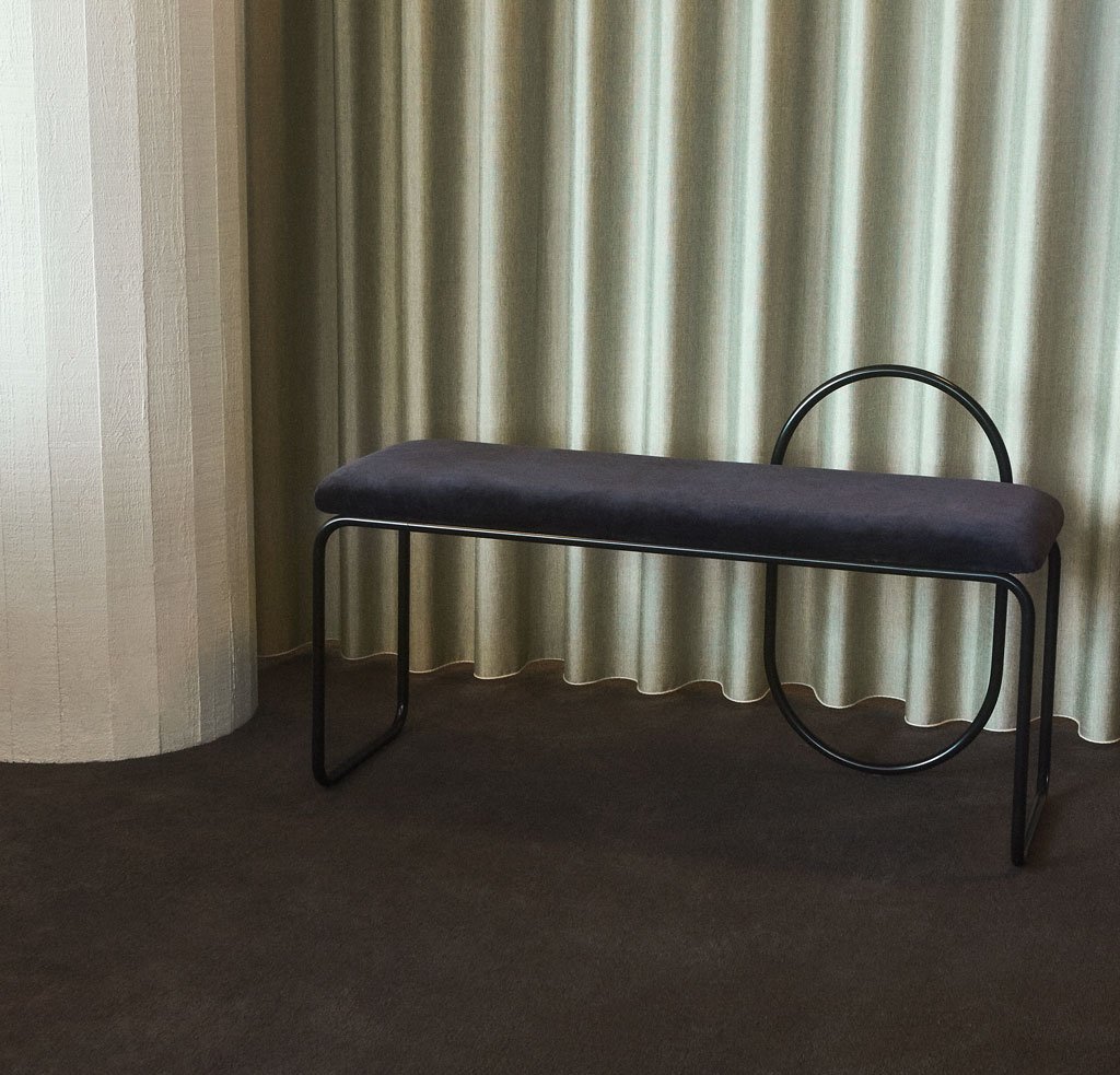 Die AYTM Angui Sitzbank zeichnet sich durch ihre stilvolle Kombination aus geometrischen Formen, organischen Konturen und luxuriösen Materialien aus, die jedem Ambiente einen Hauch raffinierte Eleganz verleiht. Sie ist funktional, stabil und dekorativ zugleich. Das elegant geschwungene Eisengestell wird von einem weich gepolsterten Bezug aus feinem Samt ergänzt, das mit seinem warmen Schimmer zum Sitzen und Verweilen einlädt. Skulptural, schlicht und dennoch luxuriös, fügt sich die AYTM Angui Bank mühelos in jedes Ambiente ein und schenkt jedem Interieur eine ganz besonders edle Note.