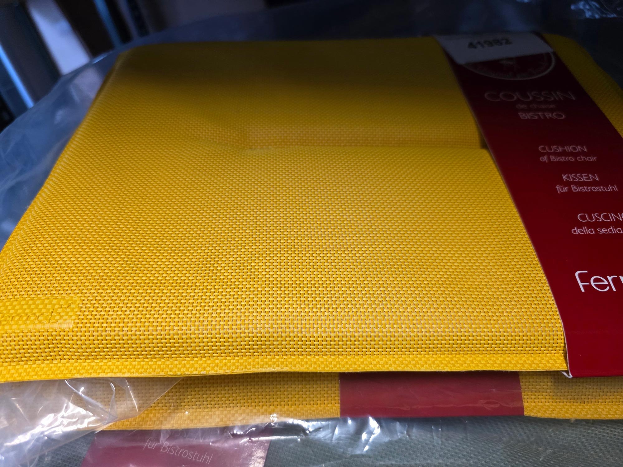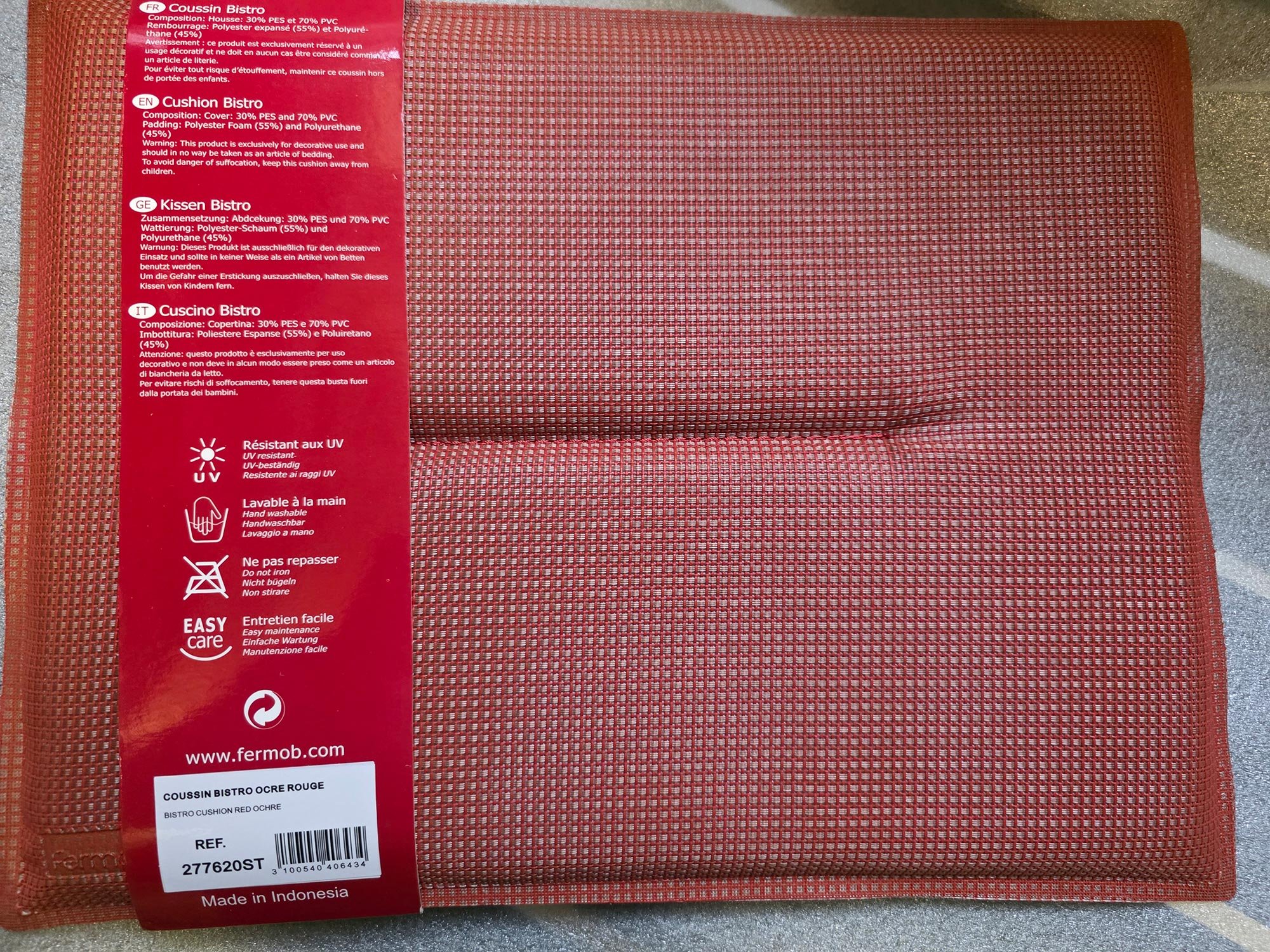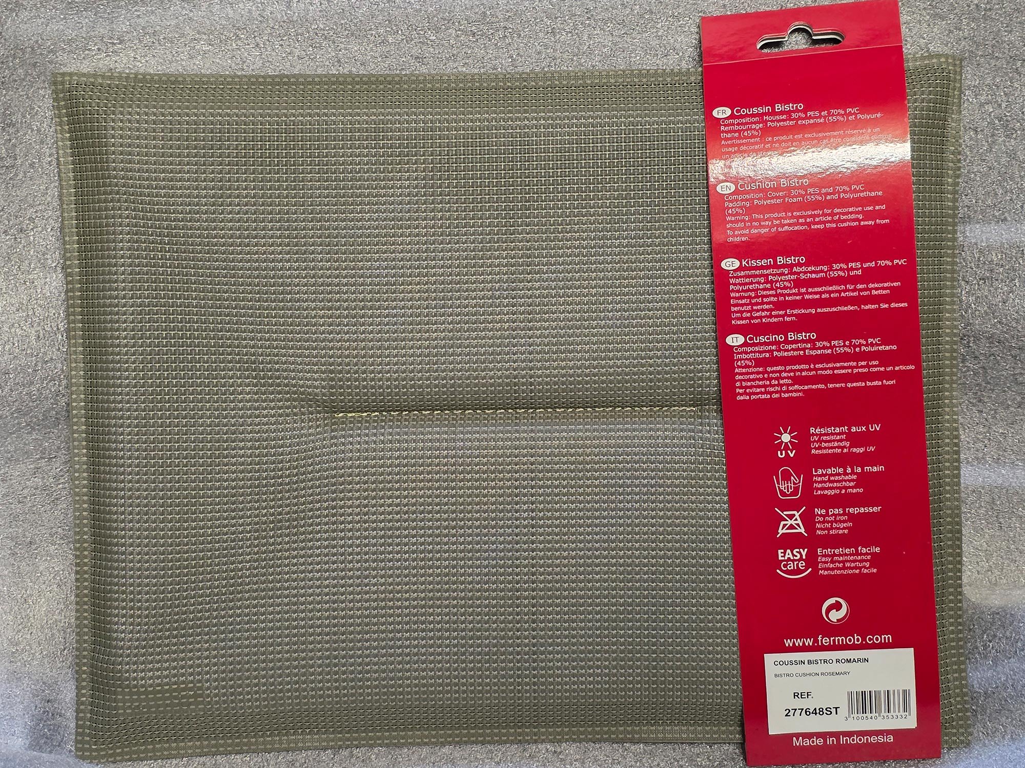 Die Fermob Outdoor Sitzkissen für Bistro 28x38 sind die ideale Ergänzung zu den Bistro Stühlen. Sie bieten ein zusätzlichen Komfort zum Stuhl und machen das Sitzen deutlich angenehmer. Die Sitzkissen bestehen aus hochfesten Polyester und Polyethylenschaum. So trotzden diese Kissen auch WInd und Wetter. Besfestigt werden die Kissen mit einem elastischen Gurt. Die Farben sind vom Hersteller extra ausgesucht und sind passend für die Stühle.