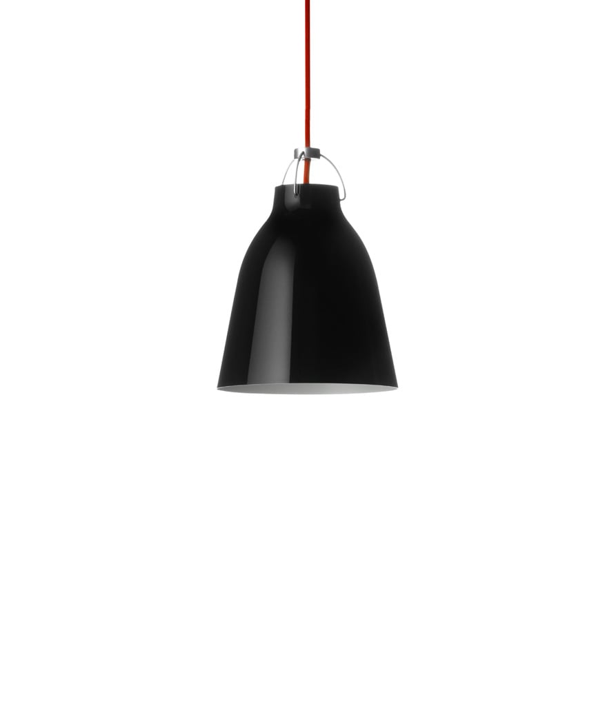 Cecilie Manz hat den Leuchtenschirm, der aus gezogenem Stahl gefertigt wird, mit einer hochglänzenden Emaillelackierung versehen. Diese ist in schwarz oder weiß erhältlich. Die eher maskulin wirkende Aufhängevorrichtung der Fritz Hansen Caravaggio Pendelleuchte bildet das perfekte Gegenstück zu den femininen Linien des Leuchtenschirms.