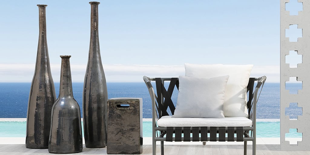 Oft ist alles schon eingerichtet: Sofa, Teppich, vielleicht ein Sessel und ein Beistelltisch. Trotzdem fehlt dieses eine Element, das das Gesamtbild abrundet. Genau hier setzt die Inout Vase an. Das tiefe Anthrazitgrau bringt Ruhe und Tiefe in helle Räume und nimmt gleichzeitig die Härte aus sehr modernen, klaren Interieurs. Neben einem Lounge-Sessel, in einer freien Ecke im Wohnzimmer oder auf einer überdachten Terrasse platziert, bündelt sie den Blick und gibt der Umgebung eine klare Struktur.