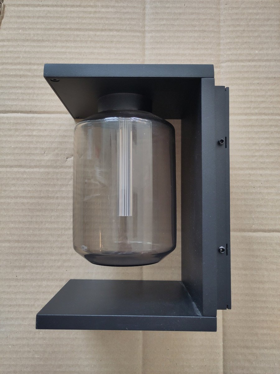 Die dimmbare IP44.de dia Wandleuchte als moderne Interpretation der klassischen Laterne für den Außenbereich - ermöglicht durch die Kombination des geradlinigen Rahmens aus Aluminiumguss und dem geblasenem Glaskörper. Die IP44.de dia Wandleuchte ist dabei unverwechselbar mit dem profilierten, reflektierenden Acrylstab, der in dem grau getönten Glas zu schweben scheint. Der deutsche Hersteller IP44.de machte sich die gleichnamige Schutzart zum Firmennamen und produziert Außenleuchten in höchster Qualität und dass dabei weder Form noch Funktionalität vernachlässigt werden, beweist die IP44.de dia Wandleuchte.