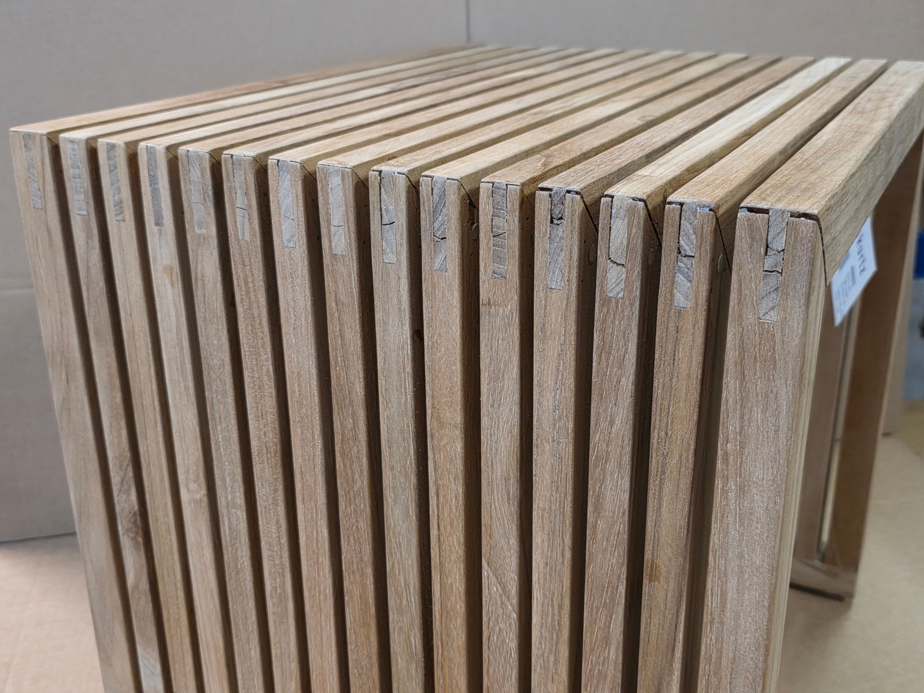 Der Jan Kurtz Tivoli Hocker ist ein überraschen vielseitig einsetzbares Möbelstück, deren seitliche Lamellenkonstruktion auf der Oberseite in einen handwerklich anspruchsvollen Reliefschnitt übergeht. Durch die solide Schreinerarbeit mit massivem Teakholz benötogt der Jan Kurtz Tivoli Hocker keine weitere Pflege, egal wo Sie das Möbel einsetzen. Egal ob Sie den Hocker im Schalfzimmer, dem Flur, im Bad oder auch auf Balkon und Terrasse nutzen, er eigent sich nicht nur zum Sitzen, sondern auch als Blumenhocker oder Beistelltisch. Denn die Oberfläche ist fein genug für einen festen, kippfreien Stand jeglicher Gegenstände.