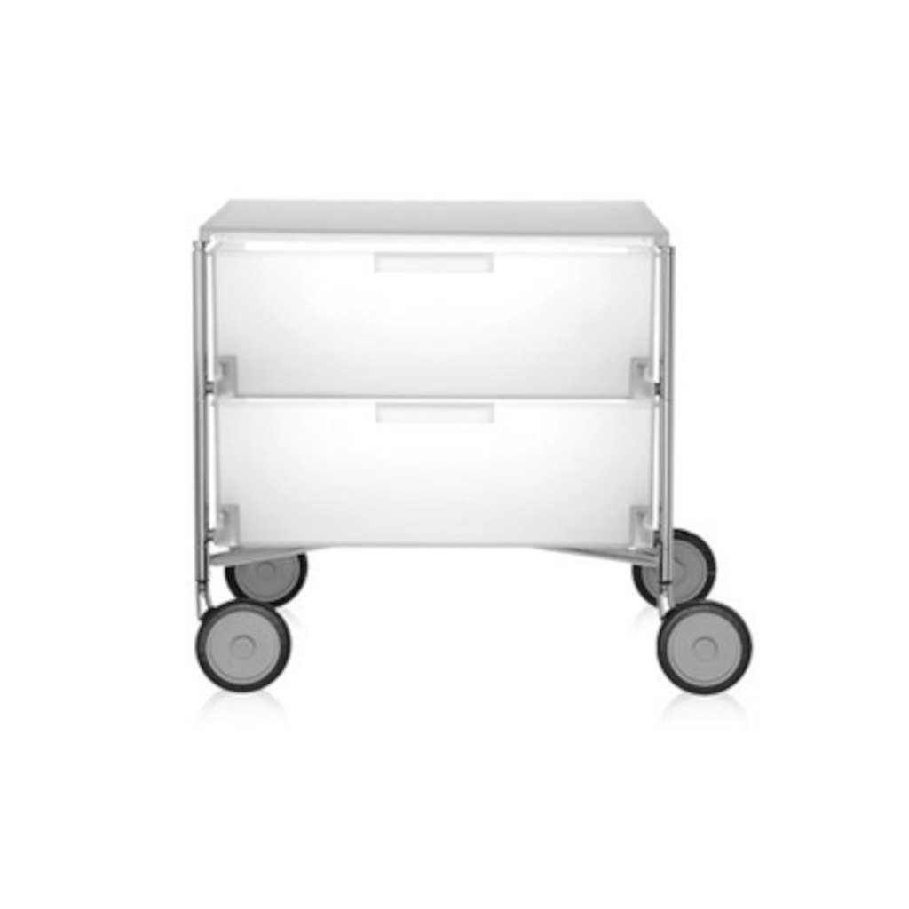 Der Kartell Mobil Rollcontainer ist ein schlichter und vielseitiger Ordnungshelfer, der durch die Rollen auch leicht zwischen einzelnen Räumen bewegt werden kann. Auf Anfrage ist der Rollcontainer auch ohne Rollen sowie als Version mit Griffen erhältlich.