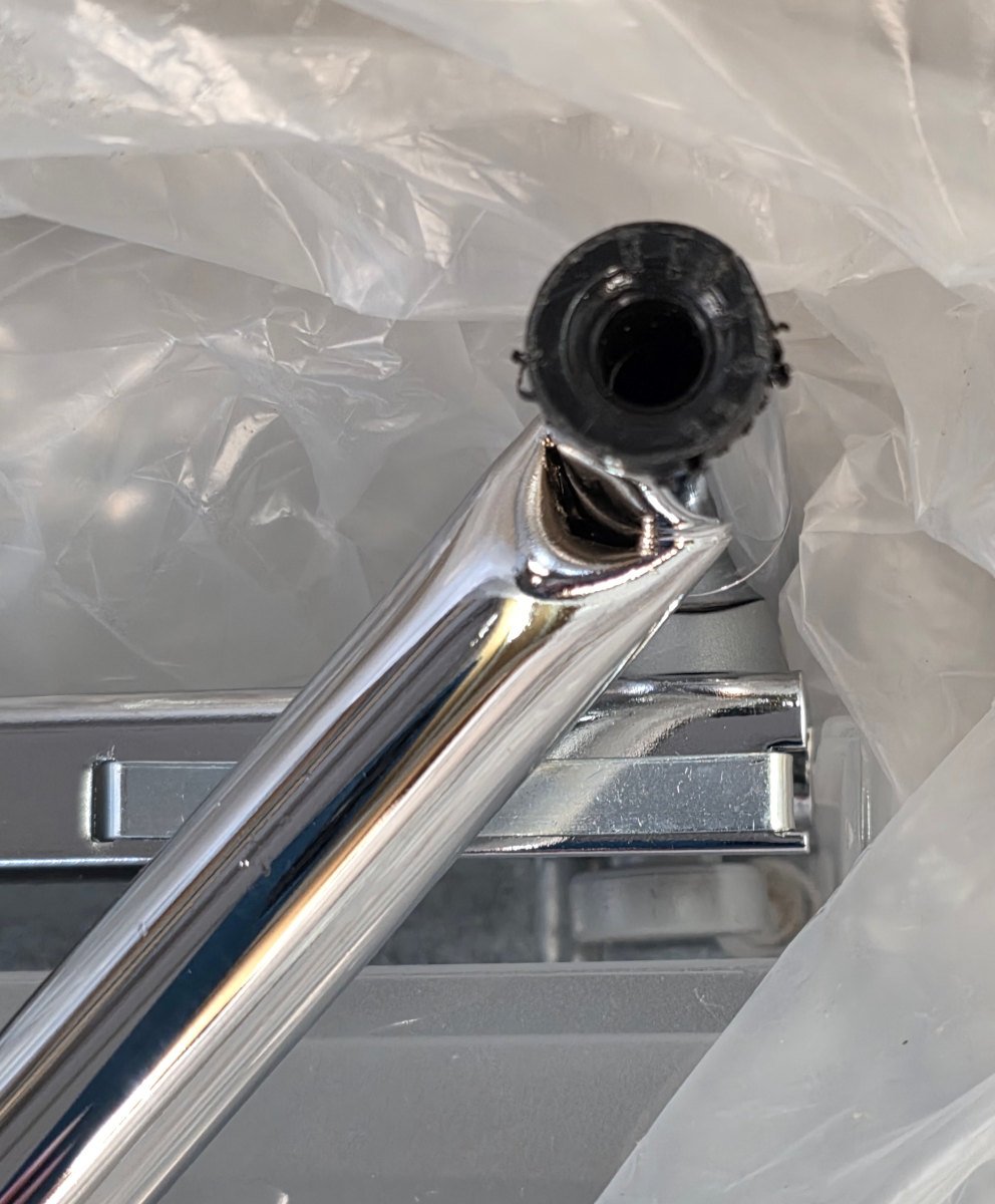 Bitte beachten Sie: Sie erhalten hier ein Ausstellungsstück mit einem kleinen Fleck auf der obersten Platte, einer etwas ausgebeulten Kante am hinteren Ende und einem etwas zerkratztem Chromfuß - bitte siehe Bilder - aus unserer Ausstellung zu einem besonders attraktiven Preis!