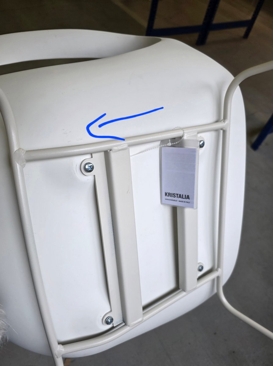 Auf Anfrage kann der Kristalia Elephant Outdoor Armlehnstuhl mit Kufengestell auch mit einer Öffnung für den Abfluss von Regenwasser versehen werden.