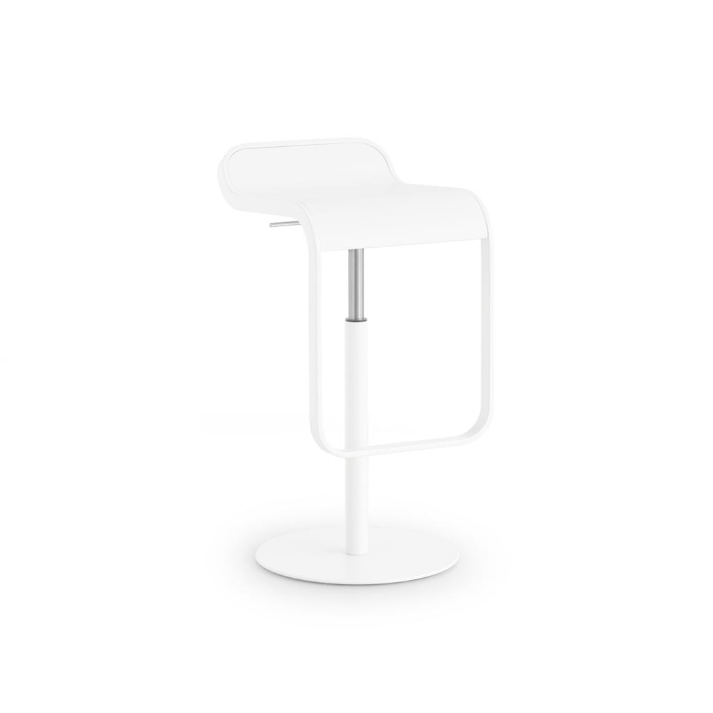 Der Lapalma Lem Barhocker weiß lackiert-chrom besteht aus einer soliden Basis aus Metall und einer stabilen Bodenplatte, die mit Edelstahl Aisi 304 überzogen ist. Die Sitzfläche kann aus vielen verschiedenen Ausführungen aus Formholz, Laminat, Leder oder Kunststoff passend zum gewünschten Einrichtungsstil gewählt werden. Der Sitz ist in einen Metallrahmen gefasst, der in eine puristische Fußstütze übergeht. Der Lapalma Lem weiß-chrom ist höhenverstellbar, die Sitzflläche um 360° drehbar. Das Gestell ist weiß lackiert, die Gasdruckfeder matt verchromt gehalten.