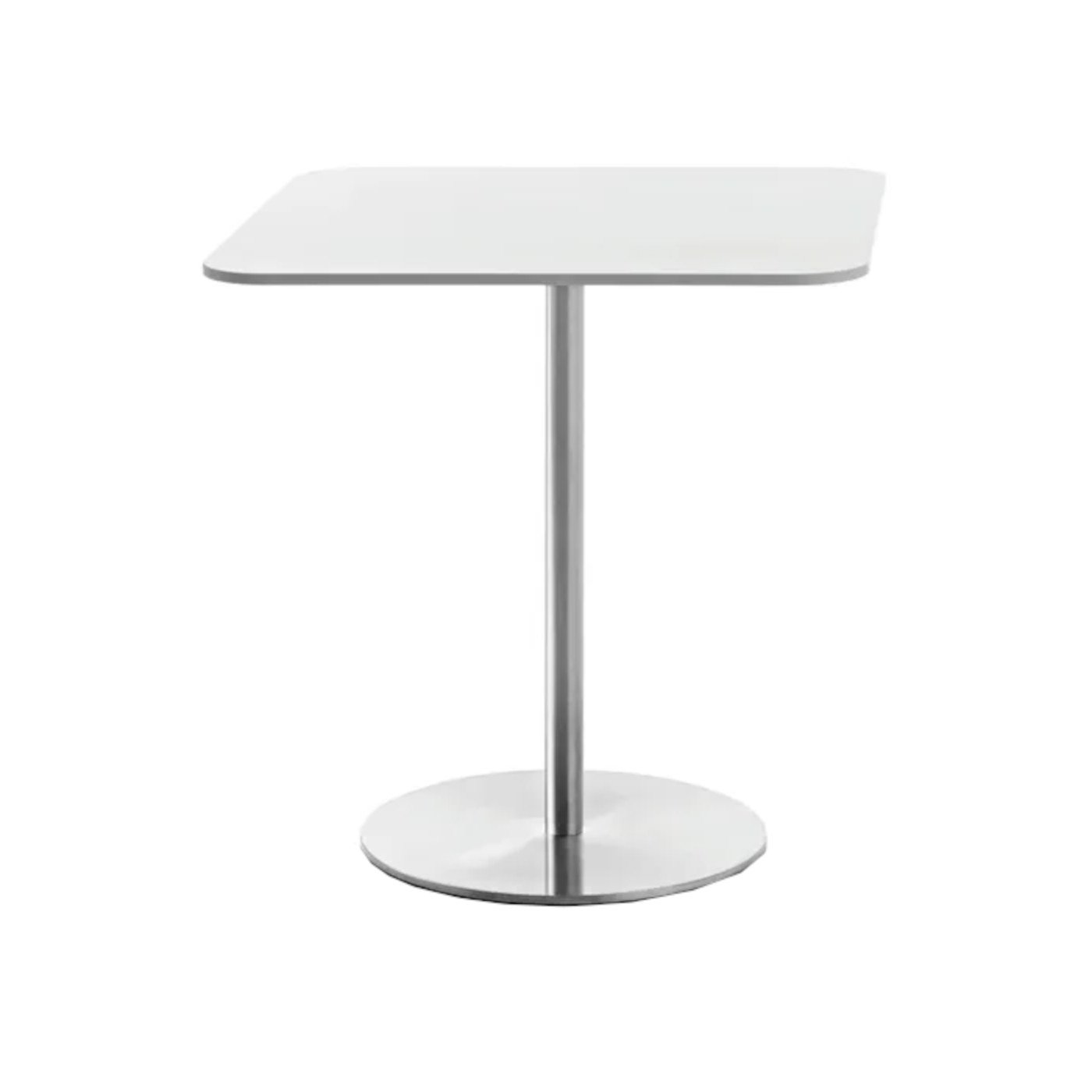 Der Lapalma Rondo' Tisch hat ein kompaktes, stabiles Gestell aus Edelstahl, das abschließend in verschiedenen Farben lackiert wird. Die Tischplatte ist wahlweise aus dem besonders widerstandsfähigen HPL (High Pressure Laminate) oder aus edlem Holz gefertigt. Je nach gewünschtem Einsatzbereich oder bestehendem Einrichtungsstil ist die Tischplatte in rund oder quadratisch erhältlich.