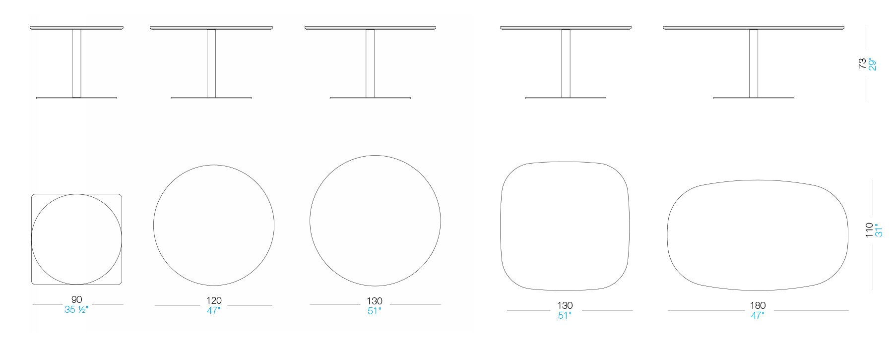 Der Lapalma Rondo' Tisch ist durch seine puristische Optik ideal, um ihn in bestehendes Interieur zu integrieren. Seine robuste Beschaffenheit macht ihn zum perfekten Tisch für Wohn- und Essbereiche, Büros, Konferenzräume, Cafés oder Restaurants.