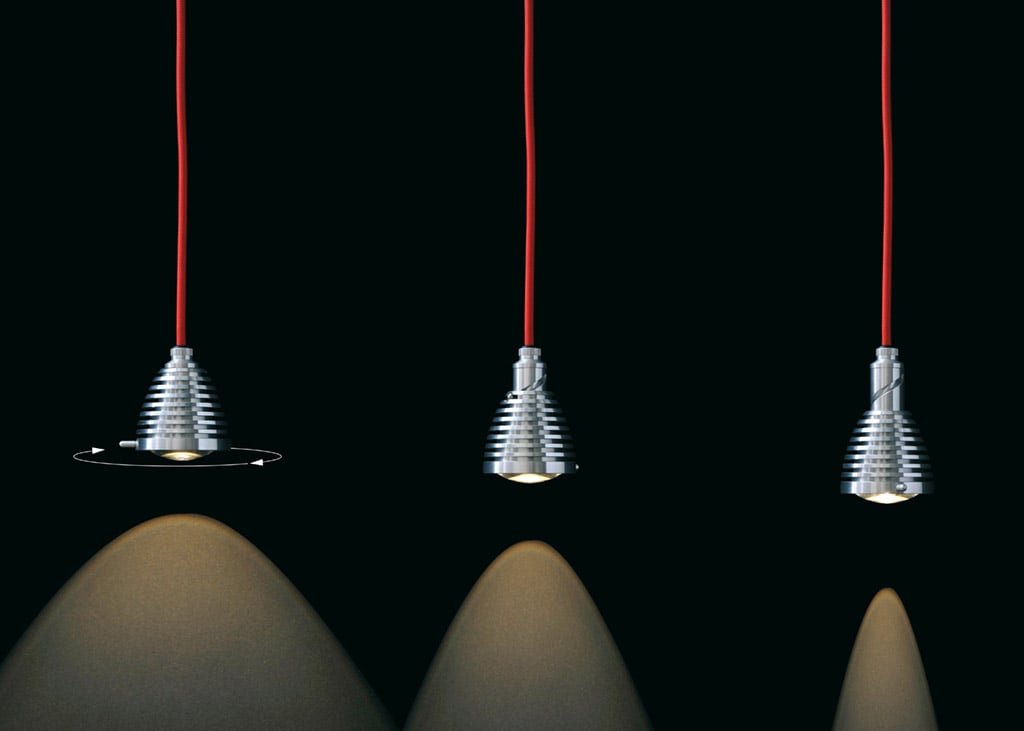 Das minimalistische Design kombiniert mit der Funktionalität macht die Athene Serie zu einer ausgezeichneten Wahl für jede moderne Einrichtung. Das mehrfach prämierte System basiert auf einem patentierten Fokus-System: ein aus einem Stück Aluminium gedrehter Leuchtenkopf ist über einen kleinen Verstellstift nach unten „ausfahrbar“. Das Besondere daran ist die Veränderung des Lichtkegels während des Drehens.