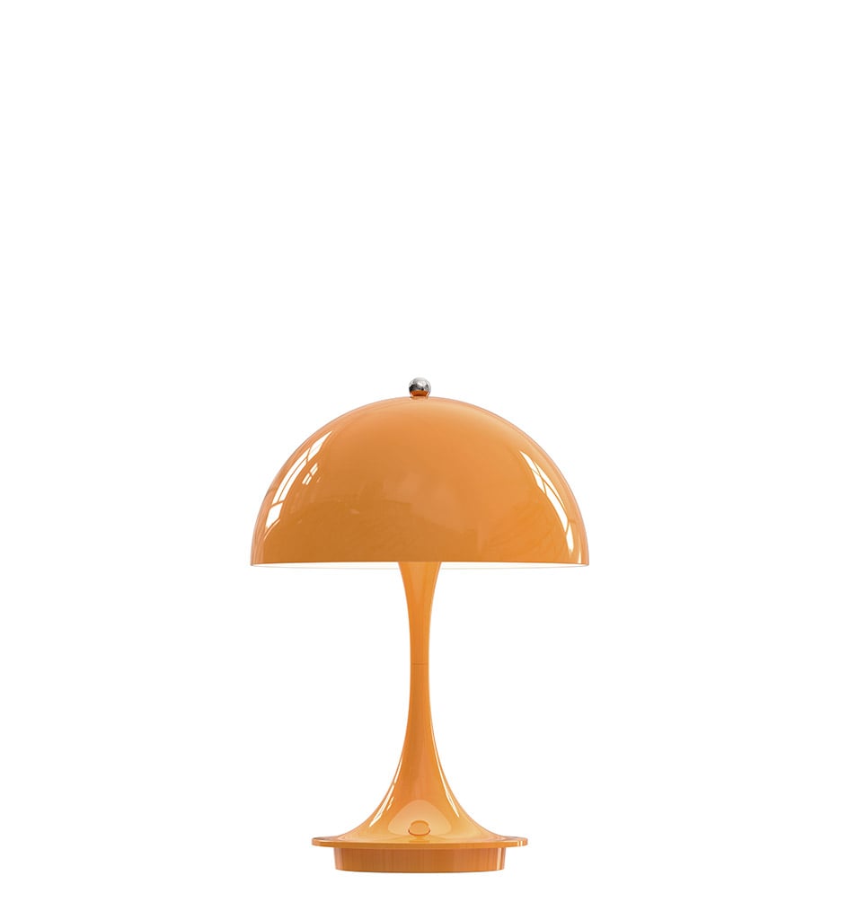 Die Louis Poulsen Panthella 160 Portable Tischleuchte / Akkuleuchte ist die Weiterentwicklung der erfolgreichen Panthella Portable V1. Die überarbeitete Version der Leuchte bietet eine verbesserte Funktionalität einschließlich Induktionsladung (zusätzlich zum klassischen laden via USB-C), hat auswechselbare Batterien und eine weiße Leuchtanzeige am Sockel beim Laden. Zudem ist die Leuchte Dank IP44 für den Einsatz im Außenbereich geeignet. Ein weiteres Upgrade: Ausschalten: Lang drücken sowie die Funktion zum Einstellen eines festen Lichtniveaus.
