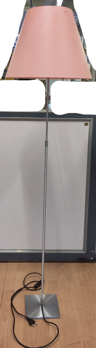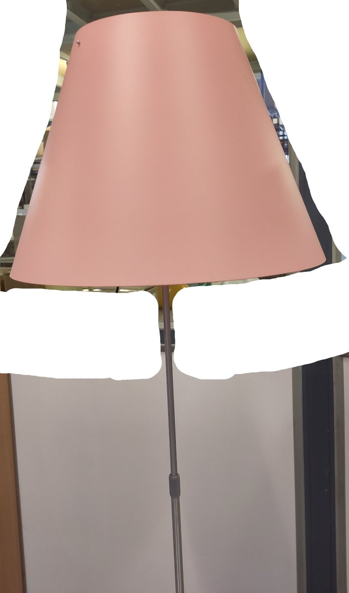 Aus gebürstetem Stahl aluminium wird der Schaft der Leuchte gefertigt. Der sehr leichte und auswechselbare Lampenschirm aus Polycarbonat ist in diversen Farben erhältlich und wird nur mittels zweier Aufnahmepunkte am Schaft der Luceplan Costanza Stehleuchte befestigt. Dadurch erscheint es, als ob der Schirm schwebt. Im Kontrast zu dem runden Lampenschirm steht der quadratische Fuß aus aluminium. Ein weiterer Clou der Costanza von Luceplan ist der Senordimmer mit Stäbchen. Dieser ermöglicht es, nur durch Berührung die Leuchte ein- oder auszuschalten. Mittels eines Teleskobstabes ist die Stehleuchte von 1,2m bis 1,6m höhenverstellbar.