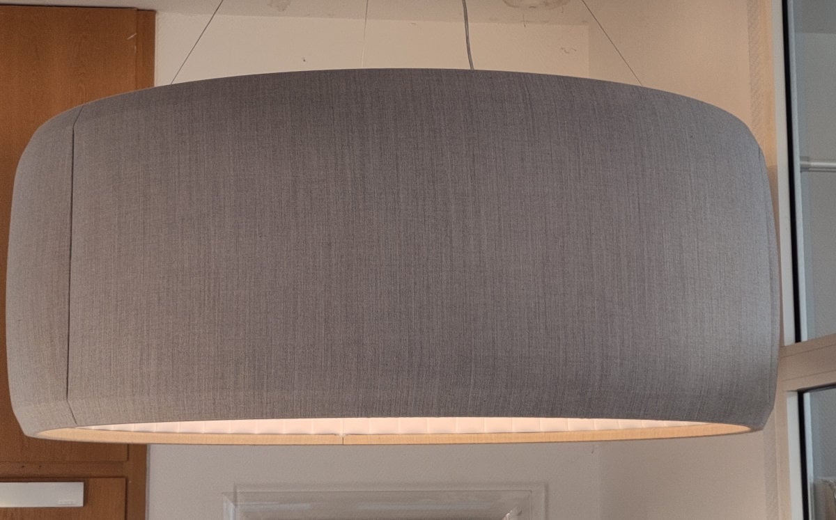 Zusätzlich ist die Leuchte, als besonderer Clou, mit dem weltbekannten Kvadrat Stoff überzogen. Die Luceplan Silenzio Pendelleuchte / Akustikleuchte dient also zusätzlich noch als Dekoration selbst und gibt dem Raum eine persönliche Note. Die Verwendung des Kvadrat Stoffes bei der Luceplan Silenzio Pendelleuchte / Akustikleuchte hat aber noch einen weiteren, sehr wichtigen, Effekt: ihre schallabsorbierende Eigenschaft hat eine überraschend hohe, akustische Dämpfung auf den Raum.