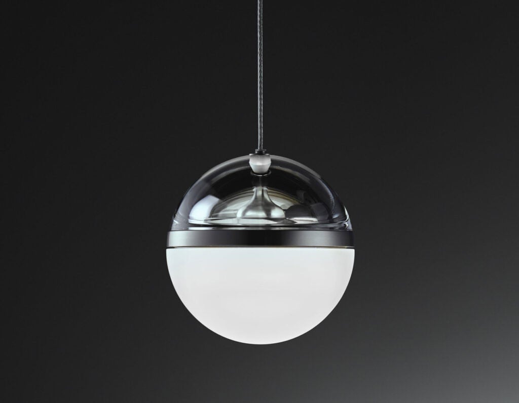 Die gläsernen Kugeln sind im unteren Teil sandgestrahlt und innen weiß emailliert, was ein diffuses und weiches Licht begünstigt, und im oberen Teil transparent, so dass die Qualität der gedrehten und gefrästen Innenteile zur Geltung kommt. In der Mitte der Kugeln befindet sich jeweils ein schmaler Streifen aus eloxiertem Aluminium, in den die Lichttechnik sowie ein Kühlkörper verbaut ist. Dieser schützt die LED-Module der Lumina Limbus Linear 5 Schiene vor Überhitzung. Dies sorgt für eine harmonische Gesamtoptik und ermöglicht eine stilvolle Integration der Leuchte in unterschiedliche Raumkonzepte.