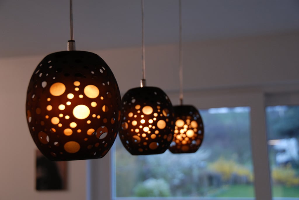 Die Mini Shakes ist bekannt für ihre markante Oberflächenstruktur – ein Spiel aus Wellen, Vertiefungen und weichen Übergängen, das dem Lichtobjekt eine taktile, fast textile Anmutung gibt. In der Large-Ausführung gewinnt die Form zusätzlich an Ruhe und Eleganz: Die Schirme wirken wie sorgfältig gedrehte Gefäße und setzen einen hochwertigen Akzent, der auch aus der Nähe überzeugt. Jede Perspektive offenbart neue Details, ohne jemals laut zu werden.