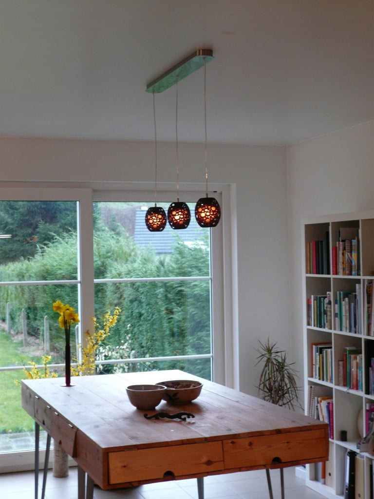 Die gerade 3er-Konfiguration sorgt für klare Orientierung im Raum: Sie spannt eine visuelle Achse, strukturiert Sitzgruppen und zoniert offene Grundrisse – ideal für lange Tische oder Arbeitsflächen. Ob symmetrisch zentriert oder bewusst leicht versetzt: Die Triplet-Leiste lässt sich auf die Architektur abstimmen und bleibt dabei angenehm zurückhaltend. In Reihen montiert, entsteht ein rhythmisches Band; als Solitär setzt sie ein fokussiertes, skulpturales Zeichen.