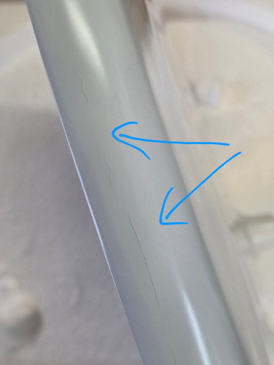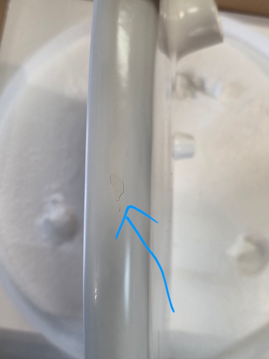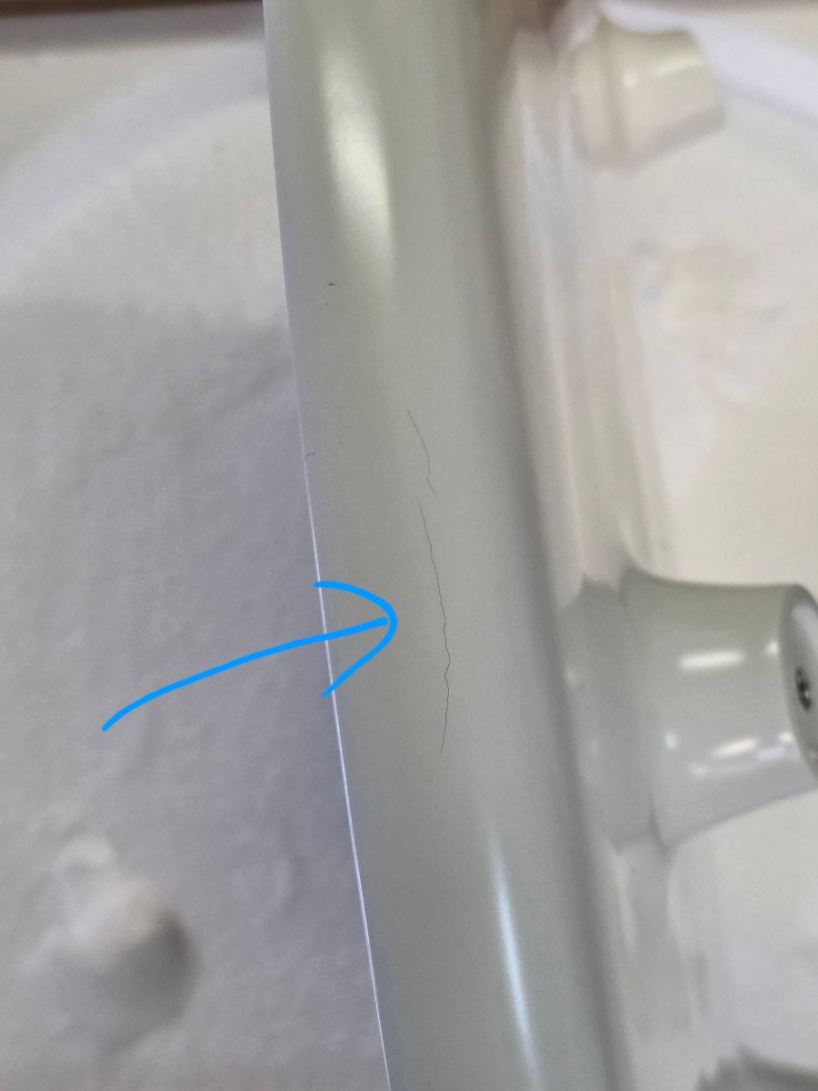 Bitte beachten Sie: Sie erhalten hier ein Ausstellungsstück mit mehreren Rissen, einer Delle, einem kleinen Loch und bei einem Montageloch unten etwas abgeplatzter Farbe - bitte siehe Bilder - aus unserer Ausstellung zu einem besonders attraktiven Preis!