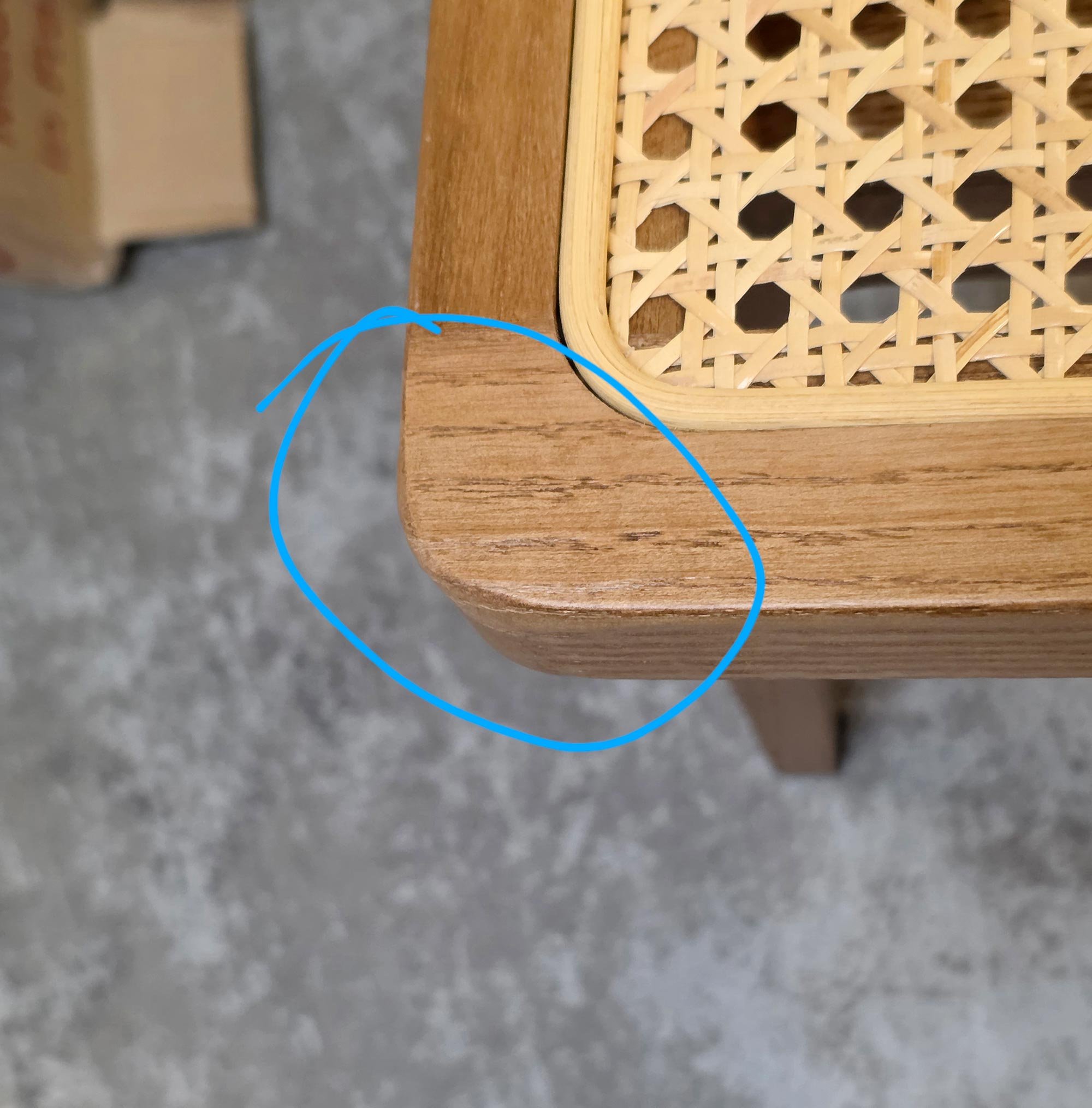 An einer Ecke zeigt sich eine etwas ungleichmäßige bzw. unsauber wirkende Verarbeitung der Kante