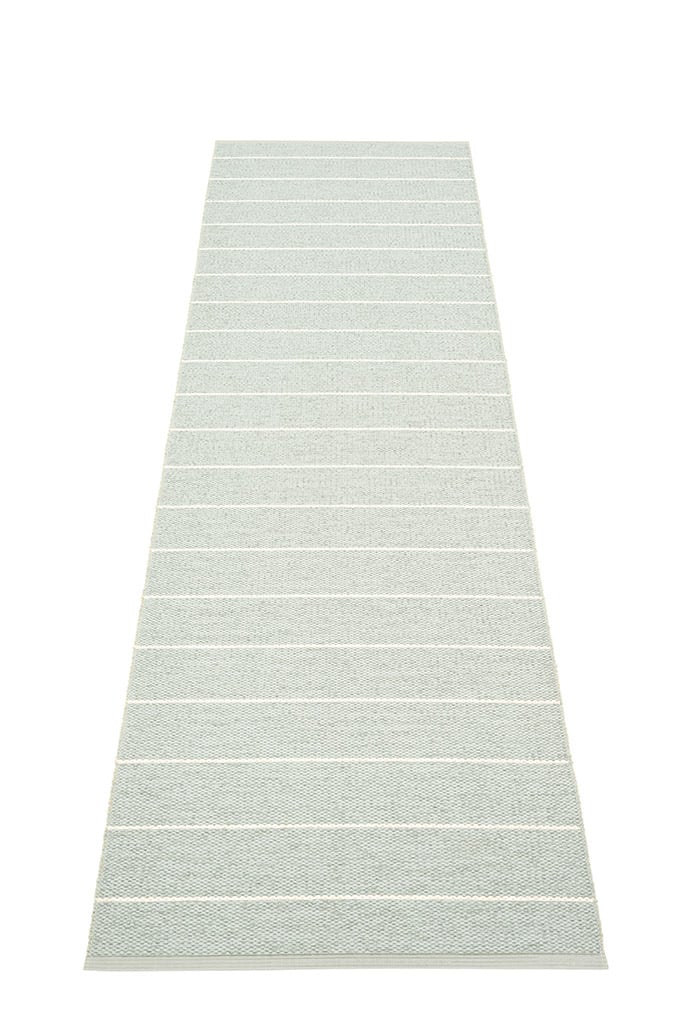 Der wendbare pappelina Carl Outdoor-Teppich - sage / seagrass besteht aus einer speziell angefertigten Kunststofffaser aus PVC, welche gewebt wird. An den Enden wird der weiche Kunststoff verschweißt und der Abschluss verstärkt, um die Lebensdauer des Läufers zu verlängern. Zur Authentifizierung befindet sich an diesem Rand das eingeprägte pappelina-Logo. Diese spezielle Kunstfaser ist gerade barfüßig besonders weich und angenehm, gleichzeitig macht sie den pappelina Carl Outdoor-Teppich - sage / seagrass aber auch UV- beständig und wasserfest.