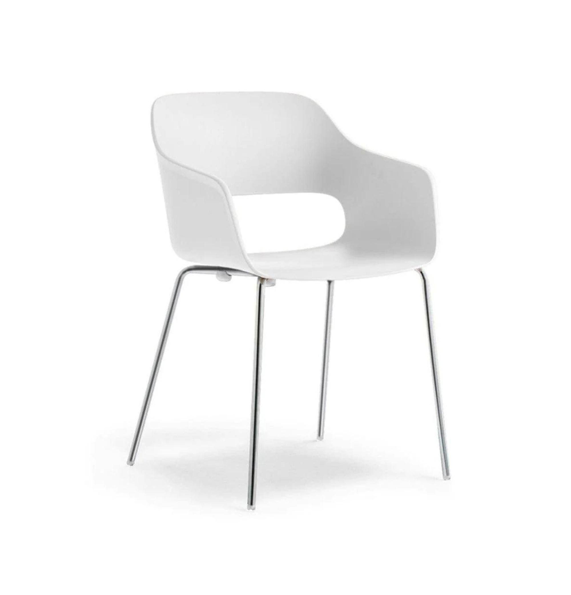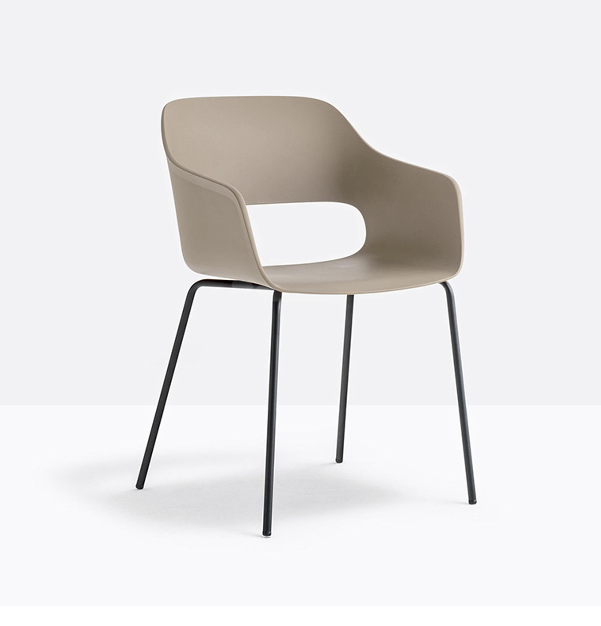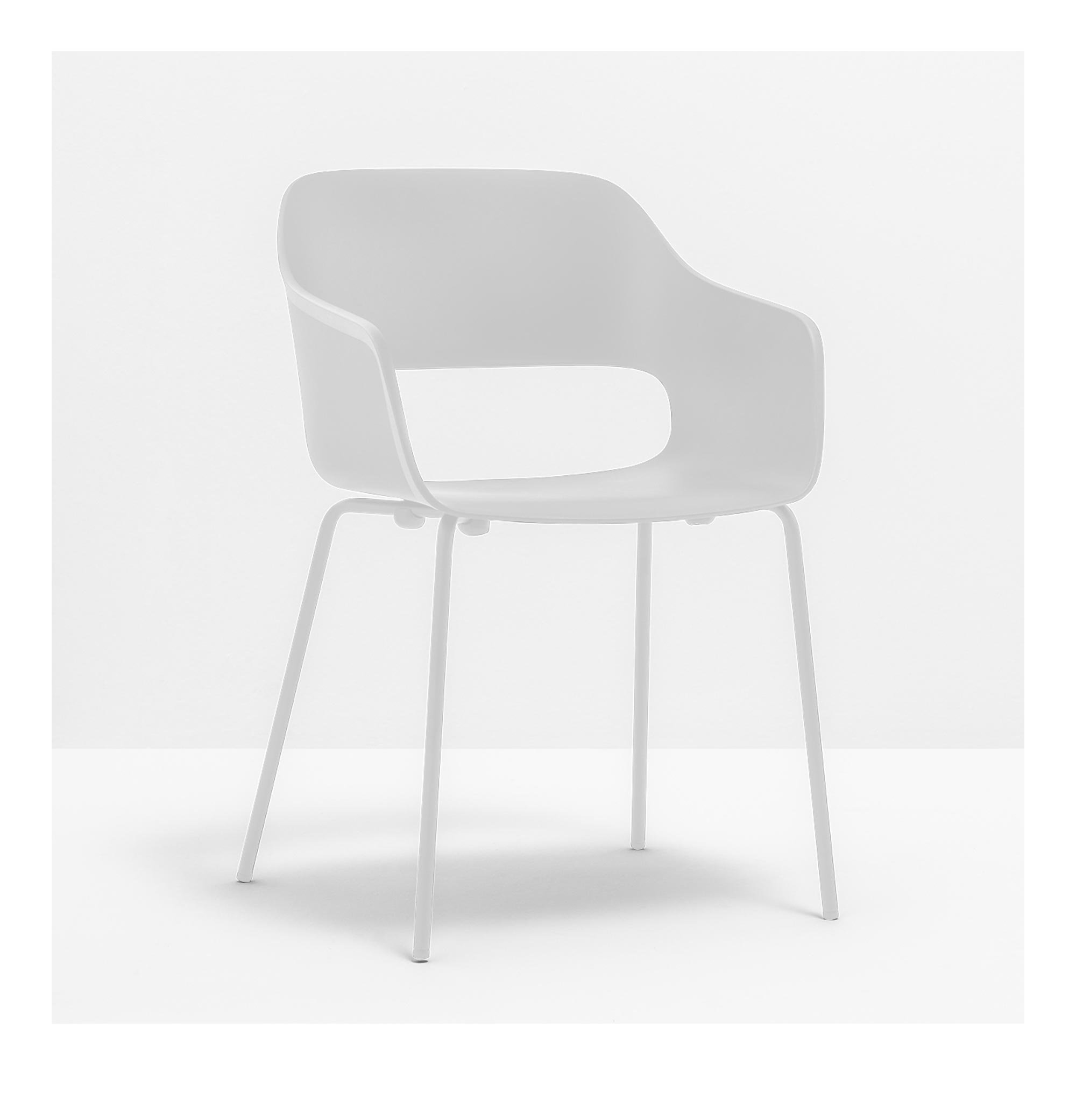 Der Pedrali Babila 2735 Armlehnstuhl besteht aus einer geschwungenen Sitzschale aus Polypropylen. Die auffällige Aussparung verleiht der Sitzschale ihren Sitzkomfort und ist gleichzeitig gestalterische Grundlage für den Entwurf. Ein weiterer Kontrast entsteht durch die filigran gehaltenen Stuhlbeine aus Metall, die dem Pedrali Babila 2735 Armlehnstuhl eine organische Dynamik verleihen.
