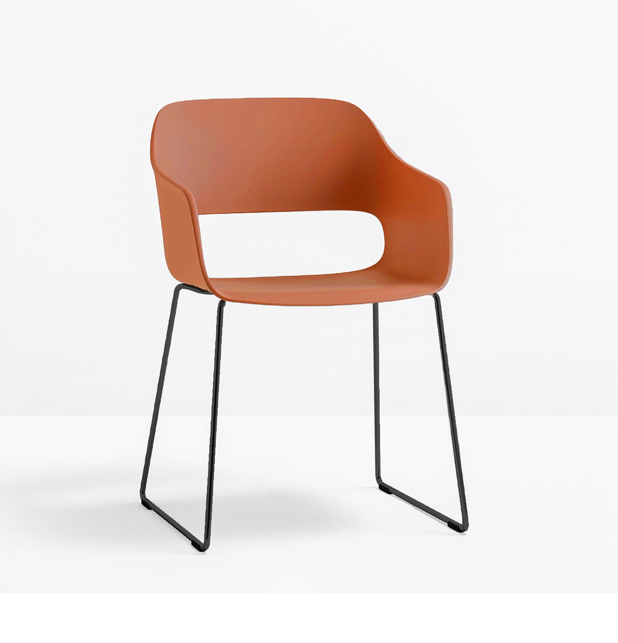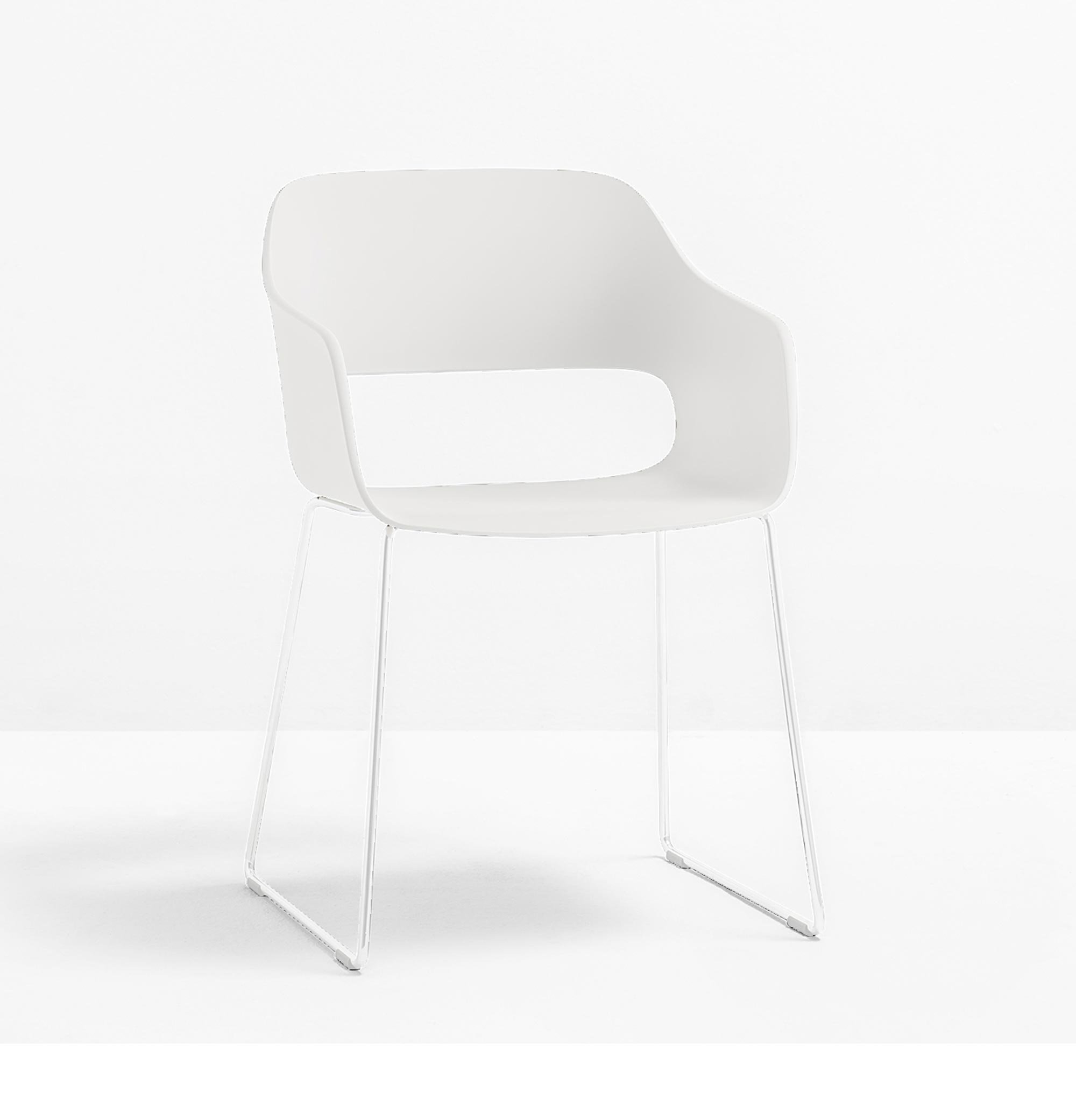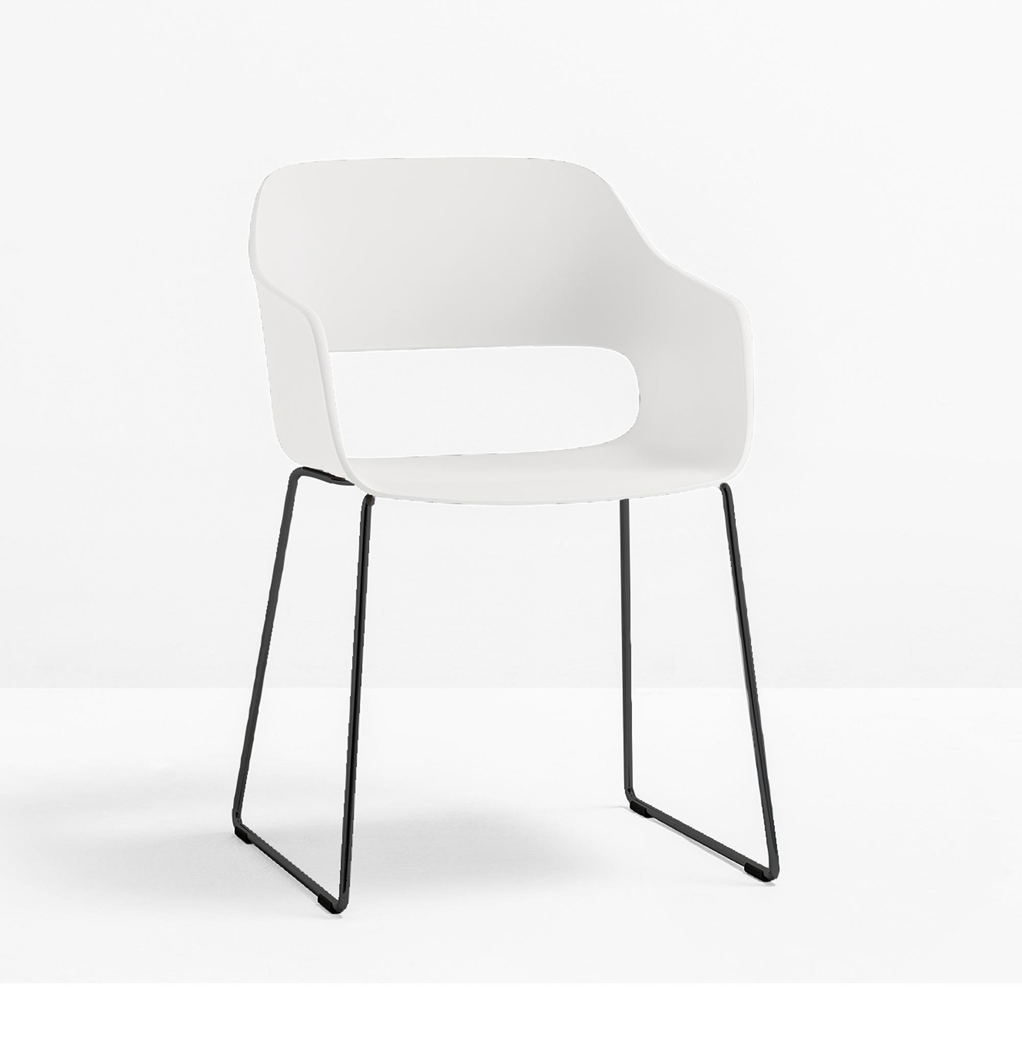 Der Pedrali Babila 2745 Armlehnstuhl ist ein kompakter Stuhl mit einer charakteristischen Aussparung aus der Feder von Designer Odo Fioravanti. Die ausladende Sitzschale steht einem interessanten Kontrast zu dem filigranen Kufengestell.