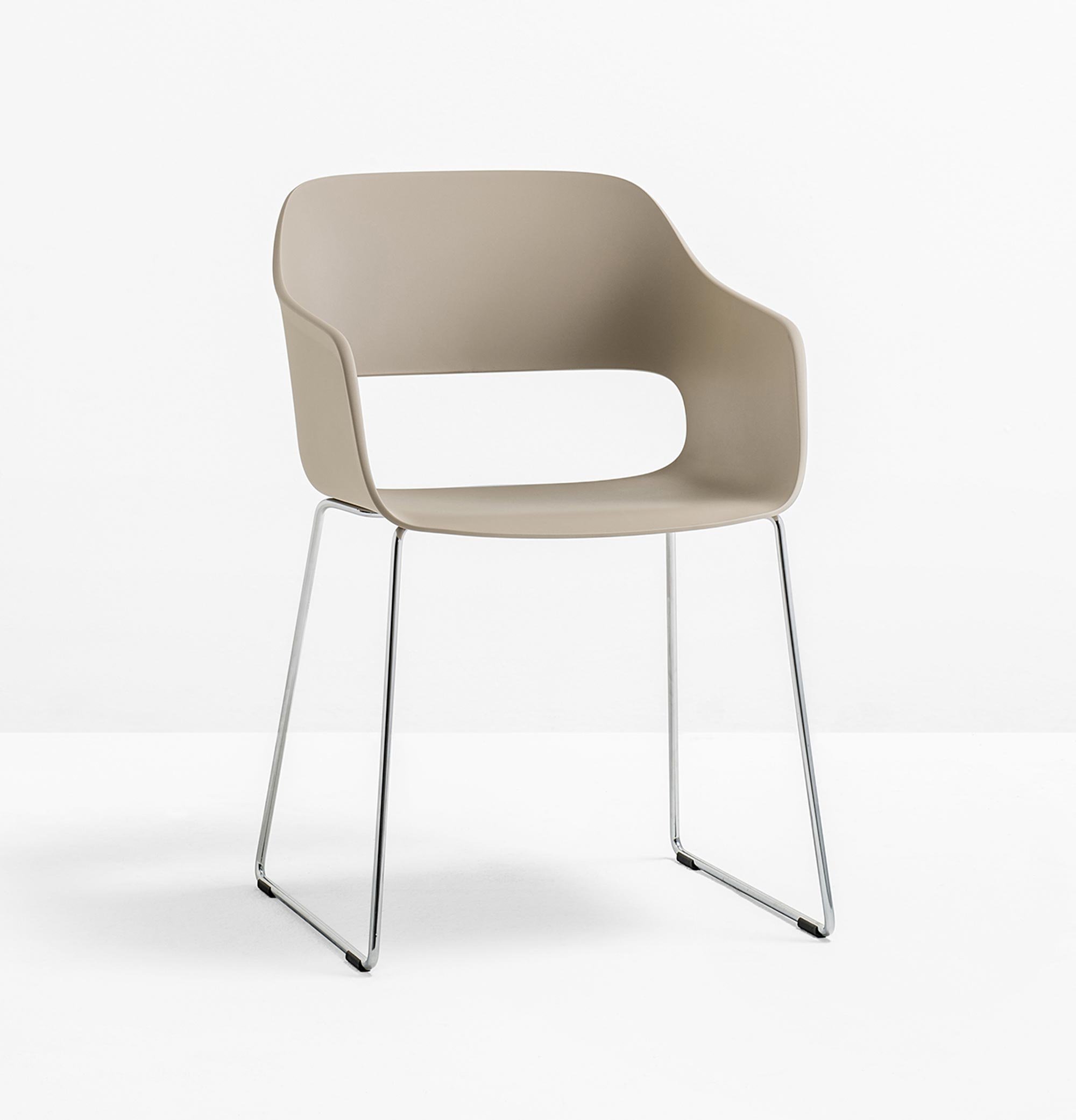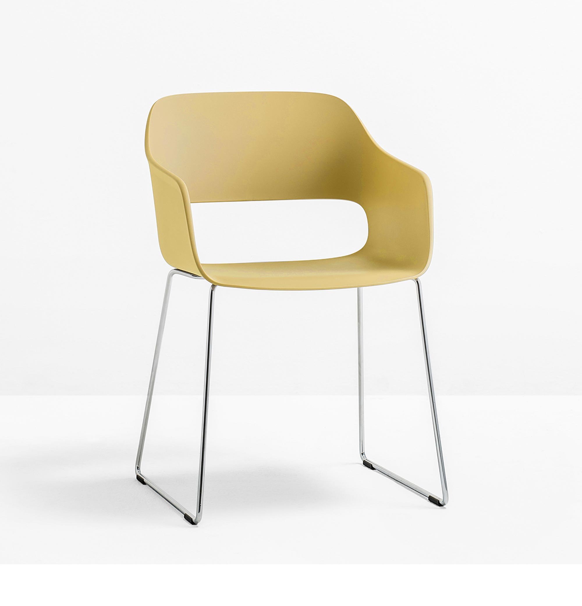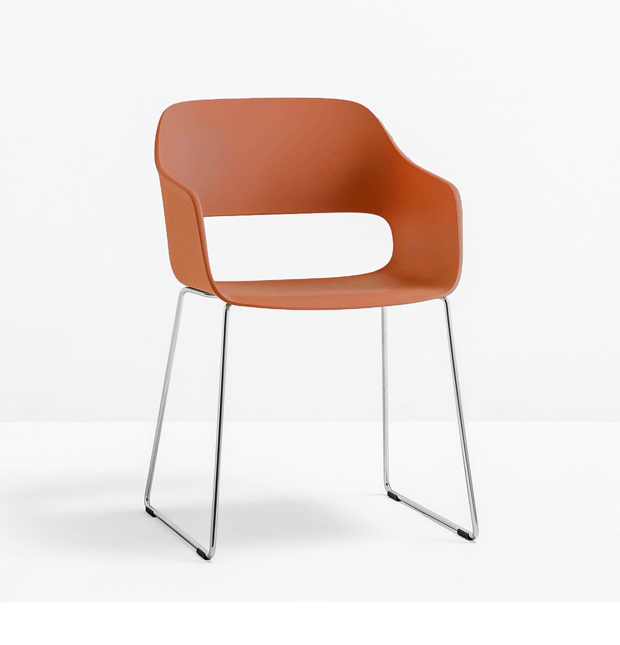 Der Pedrali Babila 2745 Armlehnstuhl ist ein kompakter Stuhl mit einer charakteristischen Aussparung aus der Feder von Designer Odo Fioravanti. Die ausladende Sitzschale steht einem interessanten Kontrast zu dem filigranen Kufengestell.