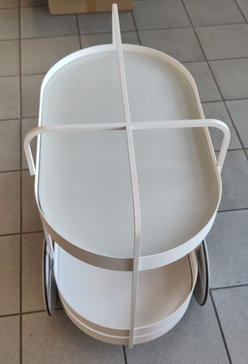 Der Schönbuch Grace Servierwagen präsentiert ein schlichtes Design mit gewisser Retro-Stimmung. Bei dessen Entwicklung ließ sich der Designer von den klassischen Möbeln der 50-er Jahre inspirieren und dies spiegelt sich ins Ergebnis wider. Die eleganten minimalistischen Linien von Schönbuch Grace Servierwagen formen oben praktische Griffe und dienen außerdem als Rahmen zu den zwei Ablagefächern. Das gesamte Möbelstück wird aus pulverbeschichtetem Metall angefertigt, der Boden des oberen Fachs hat eine zusätzliche Schicht aus mattem Glas.