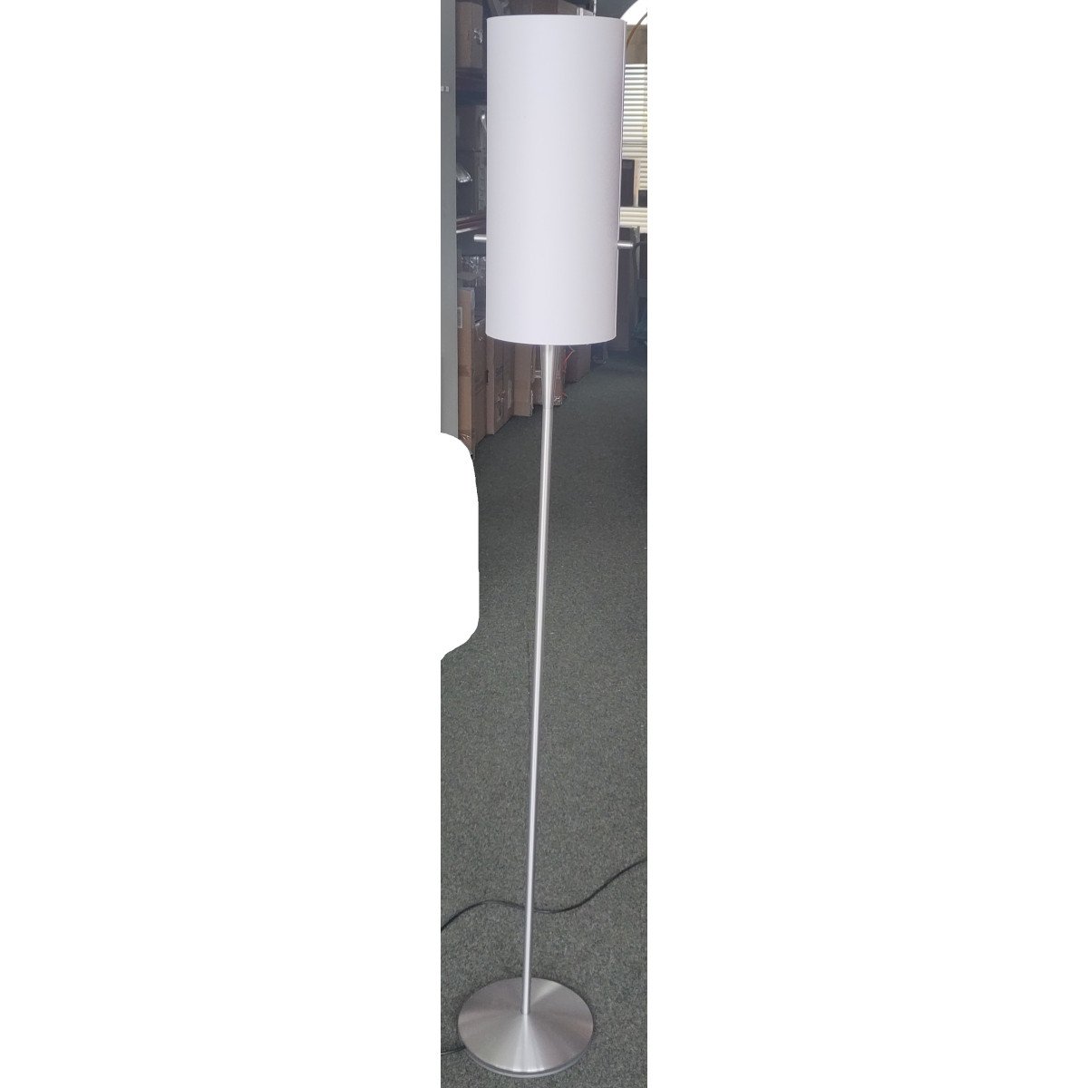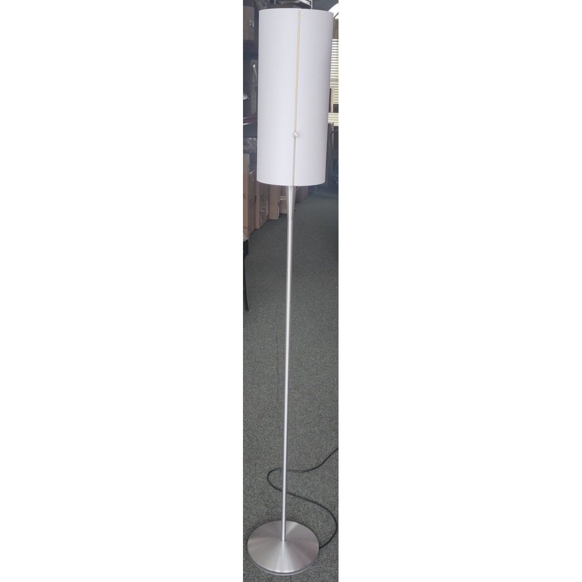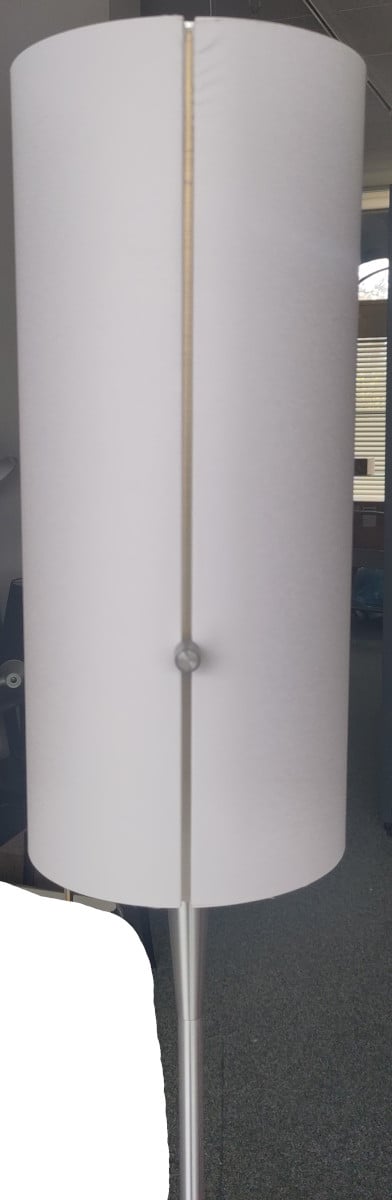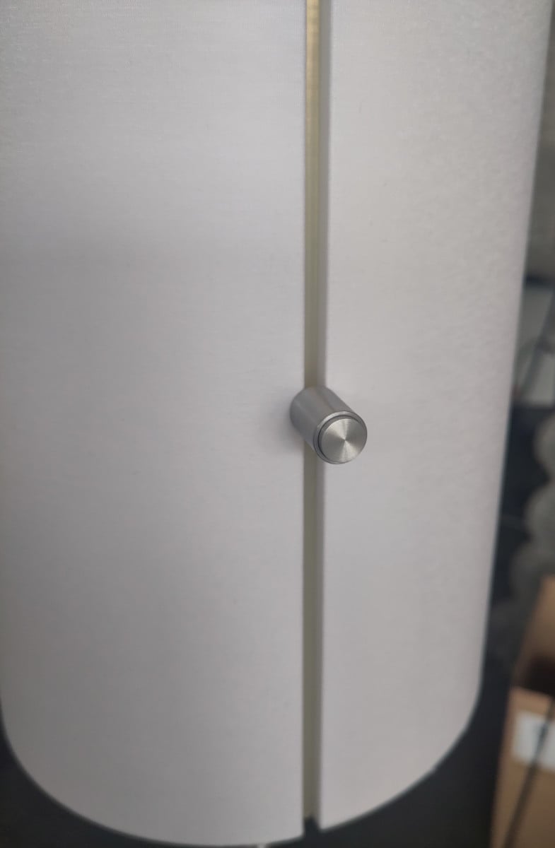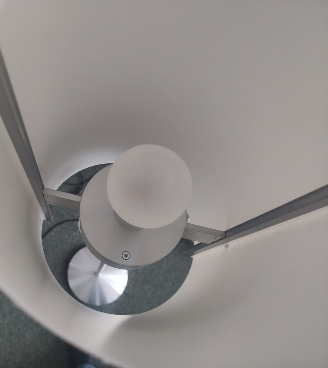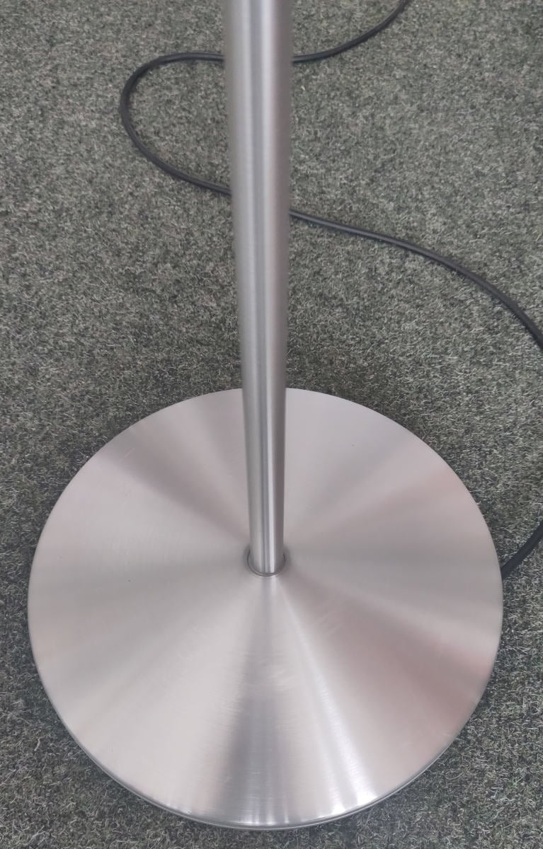 Der Schirm der serien lighting Club Floor M Stehleuchte kommt bewusst ohne sonst übliches Drahtgestell aus. Der zylindrische Körper des Schirms wird seitlich von zwei schmalen Halterungen befestigt. Dies dient dazu, dass sich im leuchtenden Zustand keine dunklen Kanten am Schirm abbilden. Des Weiteren besitzt die serien lighting Club Floor M Stehleuchte drei Lichtquellen die über die Stellknöpfe an der Seite des Schirms geregelt werden. Einer der Stellknöpfe dient der getrennten Schaltung der Lichtquellen, der andere der stufenlosen Regulierung der Helligkeit. Seitlich tritt immer weiches und diffuses Licht aus. Damit die klaren, schlichten Linien dieser klassischen serien lighting Club Floor M Stehleuchte nicht gebrochen werden befindet sich im Sockel eine Kabelaufwicklung.