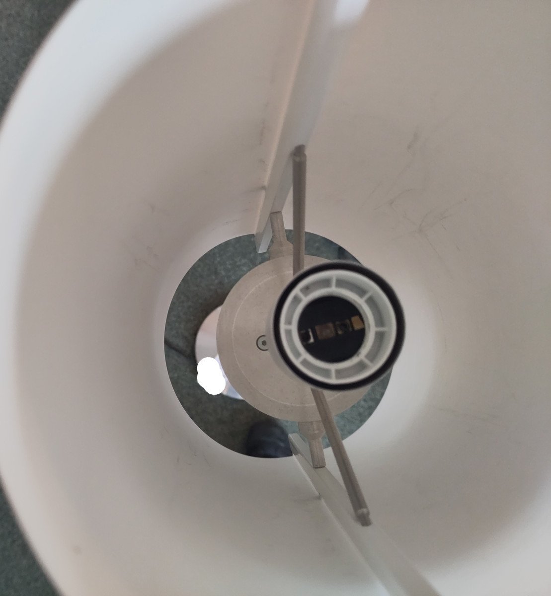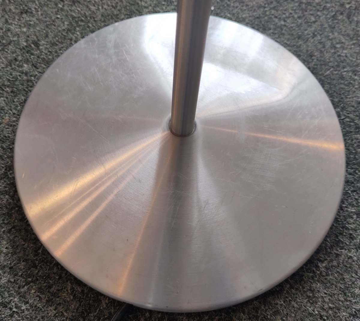 Damit die klaren, schlichten Linien dieser klassischen serien lighting Club Floor S Stehleuchte nicht gebrochen werden befindet sich im Sockel eine Kabelaufwicklung. Der Schirm der serien lighting Club Floor S Stehleuchte kommt bewusst ohne sonst übliches Drahtgestell aus. Der zylindrische Körper des Schirms wird seitlich von zwei schmalen Halterungen befestigt. Dies dient dazu, dass sich im leuchtenden Zustand keine dunklen Kanten am Schirm abbilden. Des Weiteren besitzt die serien lighting Club Floor S Stehleuchte drei Lichtquellen die über die Stellknöpfe an der Seite des Schirms geregelt werden. Einer der Stellknöpfe dient der getrennten Schaltung der Lichtquellen, der andere der stufenlosen Regulierung der Helligkeit. Seitlich tritt immer weiches und diffuses Licht aus.