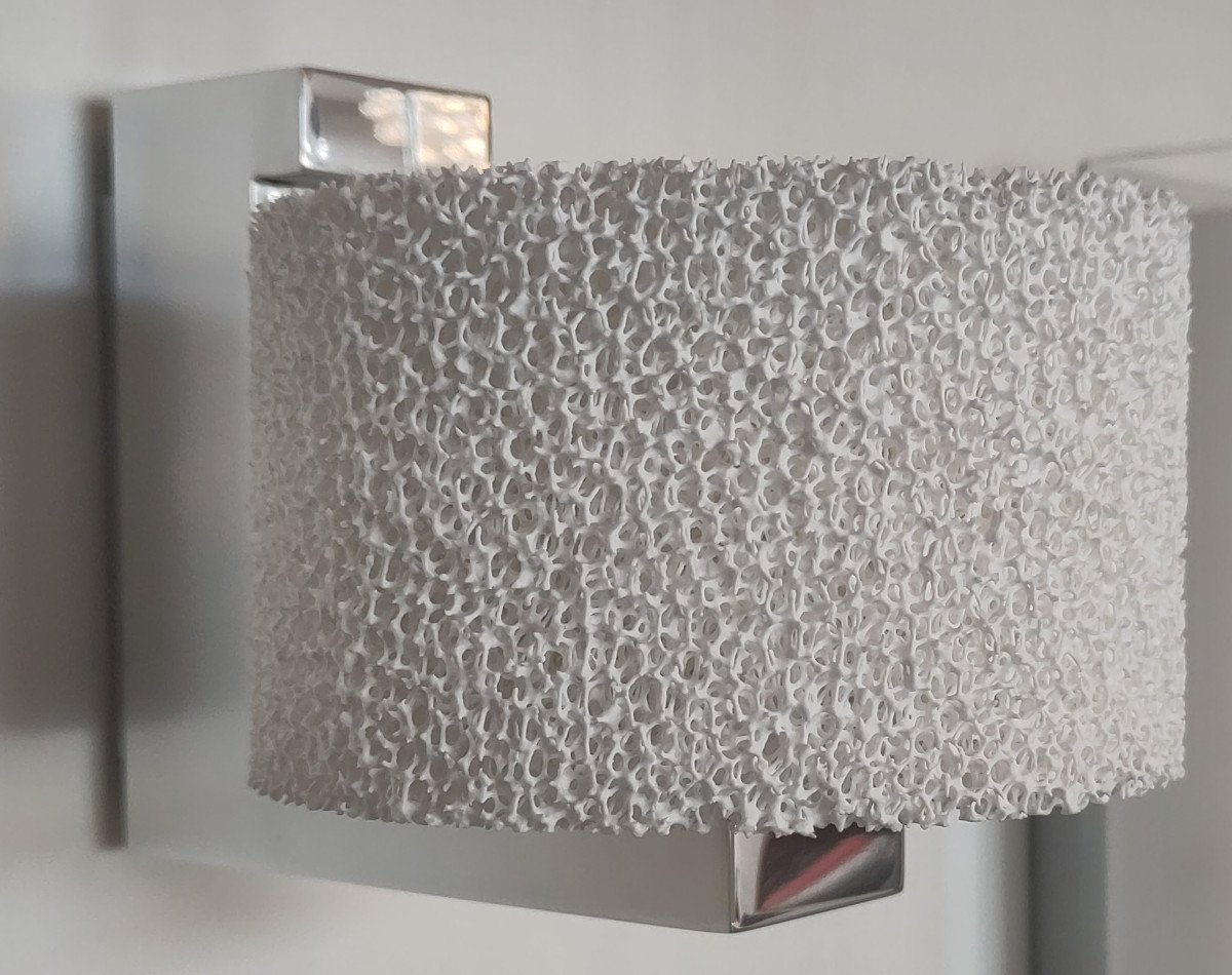 Wie alle Leuchten der Reef Serie punktet auch die serien lighting Reef LED Wall Wandleuchte besonders durch das ganz außergewöhnliche Material des Schirms: Schaumkeramik. Die leicht poröse, korallenartige Struktur verleiht der Reef LED Wall Wandleuchte aber nicht nur Ihren Namen. Dieser einzigartige Werkstoff ermöglicht dem durchscheinenden Licht einen diffusen, atmosphärischen Charakter. Der zylindrische Körper des Schirms ist einseitig offen. Das Licht tritt somit brillant und völlig blendfrei in einem sehr weiten, hellen und schattenfreien Abstrahlwinkel durch die Schirmöffnung. Zusätzlich entweicht durch die Korallenstruktur des Schirms selbst eine gedämpfte Abstrahlung zur indirekten Beleuchtung. Dadurch kann ein ganzer Raum sowohl über die Decke ausgeleuchtet, als auch gezielt ein kleinerer Bereich akzentuiert werden. Die serien lighting Reef LED Wall Wandleuchte wird standardmäßig mit Betriebsgerät geliefert.