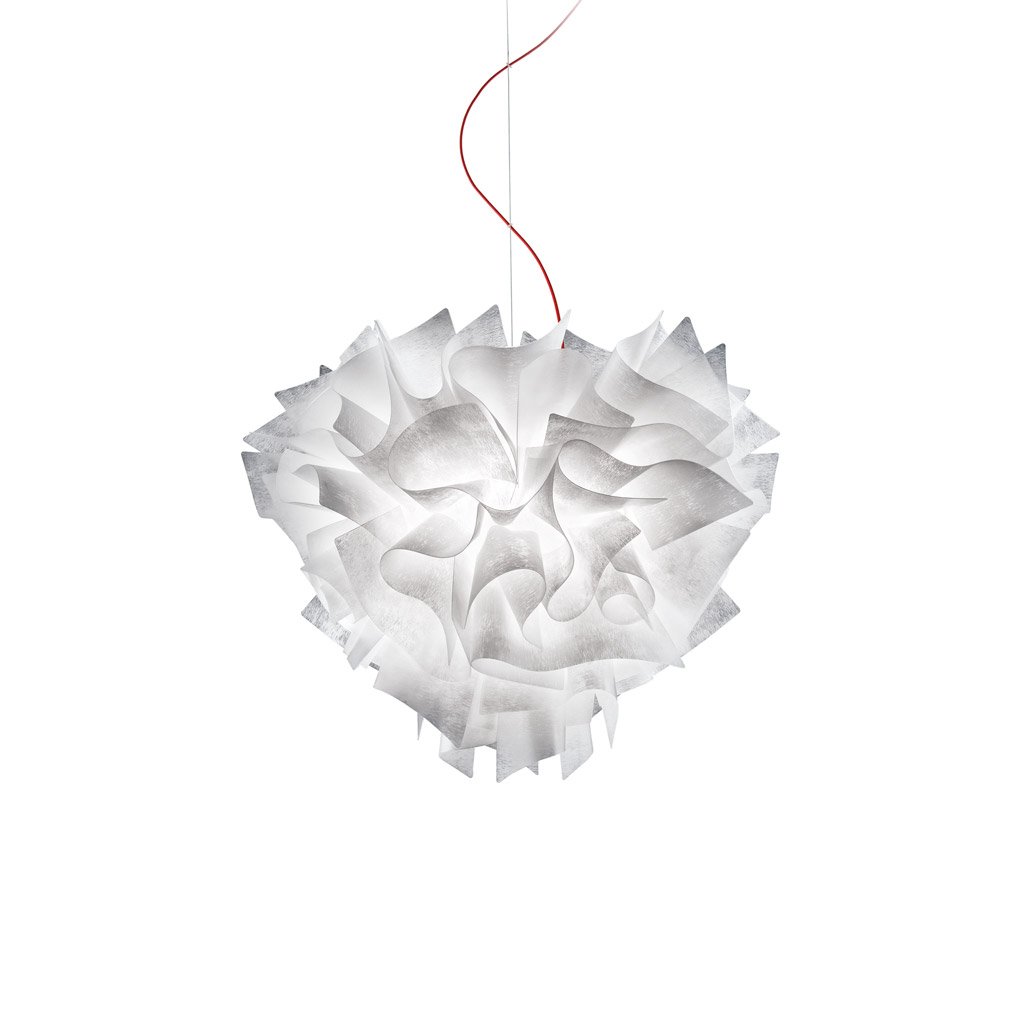 Die große Auswahl an Farben und Ausführungen von Veli verleiht diversen Innenräumen eine reichhaltige Vielfalt mit luxuriösem Mehrwehrt. So füllt und umhüllt zum Beispiel Veli Couture jeden Raum mit einem weichen Finish, das von modernen Stofftexturen inspiriert wurde. Abgerundet wird das Ganze durch die Aufhängung mit wahlweise einem transparenten oder roten Kabel, wobei Letzteres für einen besonders reizvollen optischen Kontrast sorgt. Wer mit absolutes Prestige und Vielseitigkeit sowohl die Privateinrichtung als auch die Objektgestaltung aufwerten will, wird gewiss mit der handgefertigten metallischen Version der Slamp Veli Pendelleuchte fündig. Diese exklusiven, luxuriösen Materialien von Slamp werden durch eine besonders beständige und exklusive Aluminiumverdampfungstechnik metallisiert. Für eine besonders zart romantische Beleuchtung sorgt Veli Opal und alle anderen Farben aus dem opalisierenden Material Opalflex®. Durch ihre einzigartigen Farbabstufungen, die durch detailgenauen Siebdruck erreicht werden, schaffen diese Versionen der Veli Leuchte eine gemütliche Beleuchtung mit üppigen, dekorativen Details. Für einen modernen Touch sorgt die glanzvolle Veli Prisma aus Lentiflex®. Das patentierte Material hat ein Fresnel-Effekt und verleiht den Lichtquellen eine Fluidität, die an ein leuchtenden Wasserfall erinnert.
