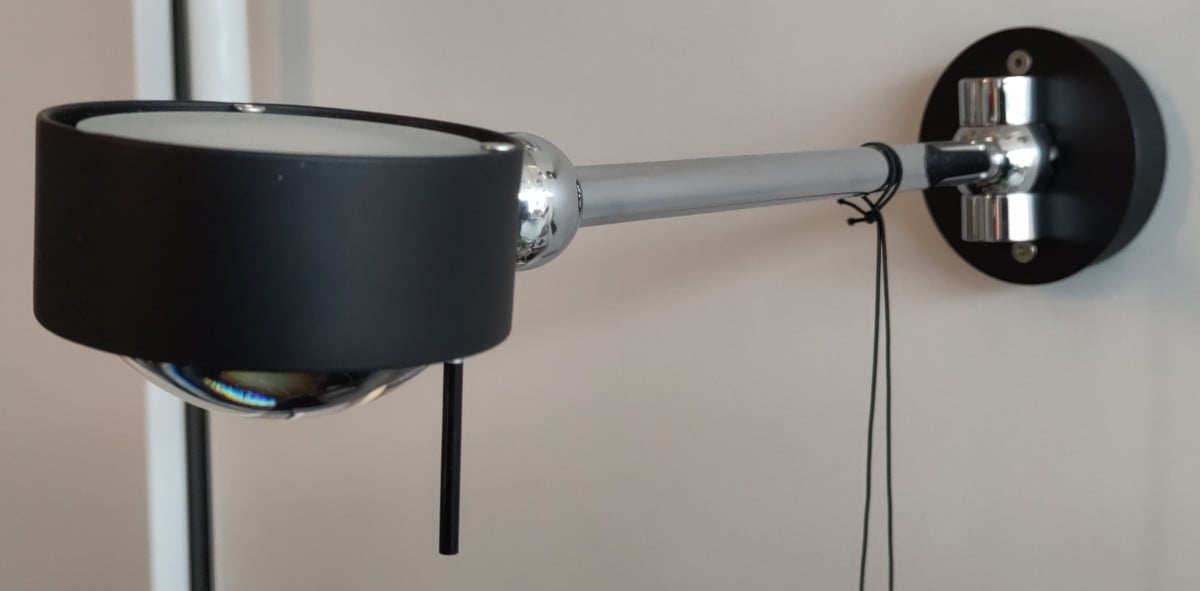 Top Light Puk Mini Hotel Wandleuchte - schwarz, chrom, 20cm, Linse klar, Glas matt - Aussteller