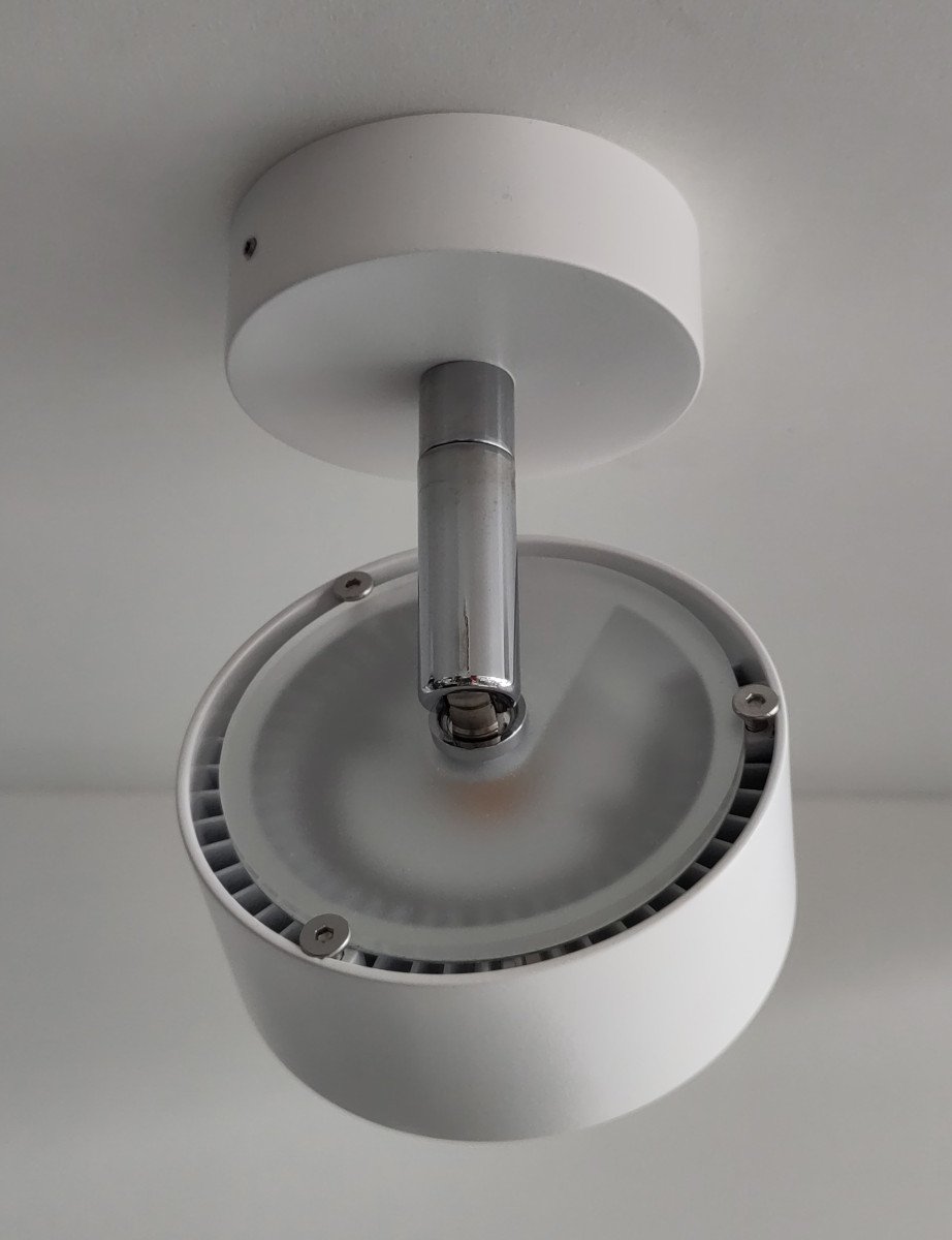 Das schlichte Gehäuse der Top Light Puk Mini Turn Deckenleuchte ist aus Metall gefertigt und wird abschließend durch verschiedene metallische Veredelungen oder Lackierungen abgerundet. Die Verbindung des Reflektorkopfes mit dem Baldachin über einen kurzen Arm lässt die Leuchte luftiger erscheinen. Durch die Kippfunktion kann die Top Light Puk Mini Turn Deckenleuchte nicht nur zur allgemeinen Beleuchtung, sondern auch zur Akzentuierung bestimmter Objekte genutzt werden.