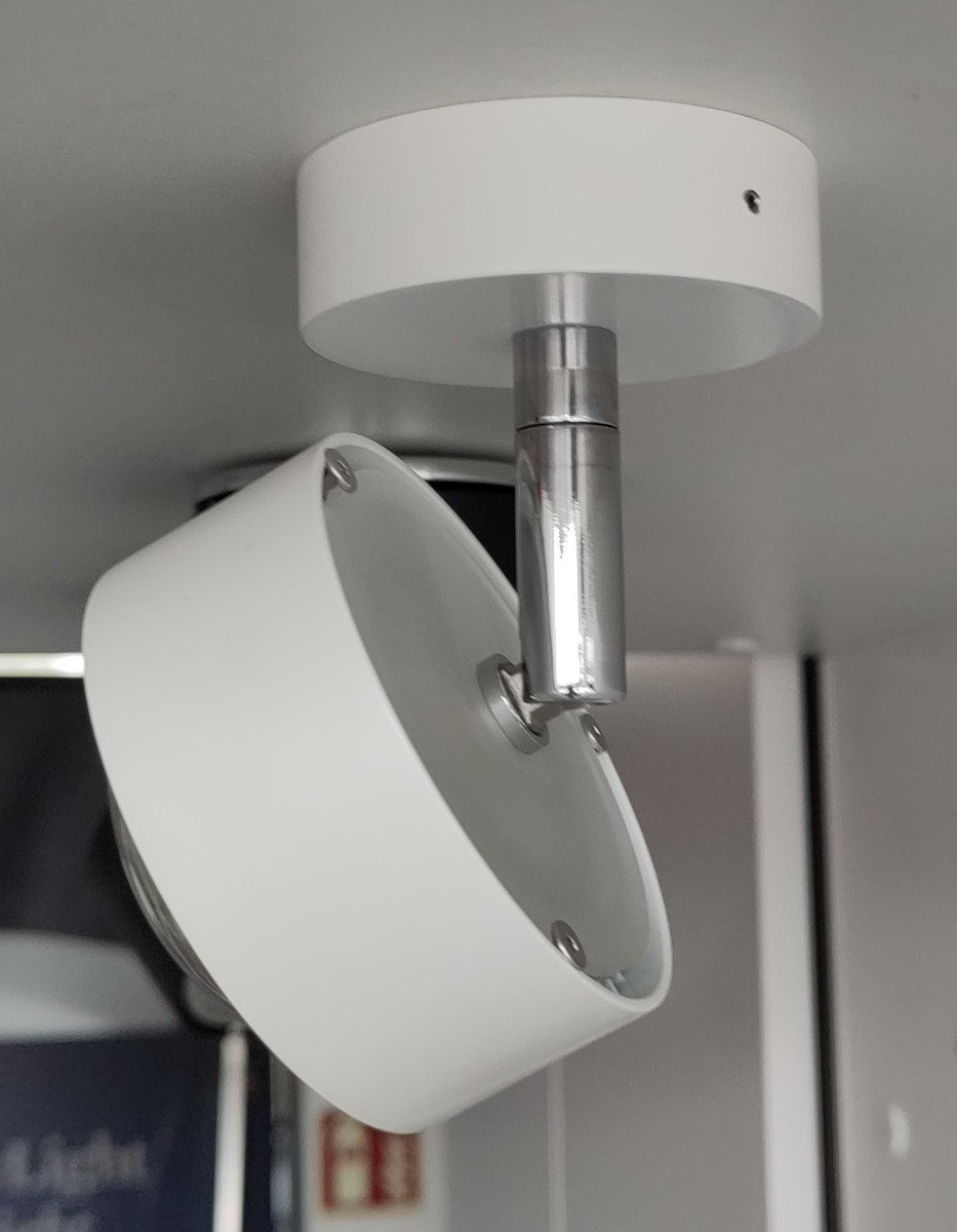 Ihre Flexibilität bezieht die Top Light Puk Mini Turn Deckenleuchte jedoch nicht nur aus ihrer Bauart, sondern auch durch ihre Optionierbarkeit. Sie ist wahlweise als dimmbares Halogen- oder LED-Modell erhältlich und kann auf der Unterseite je nach Einsatzzweck mit verschiedenen gläsernen Abdeckungen bestückt werden. Je nach Auswahl wird das Licht unterschiedlich gebrochen: die klare Linse sorgt für einen fokussierten Lichtkegel, das mattierte Glas und die mattierte Linse erzeugen eine flächige, weiche Beleuchtung. Zusätzlich kann zwischen einem einseitig nach unten abstrahlenden Down Light oder einem beidseitig abstrahlenden Up- & Down Light gewählt werden.